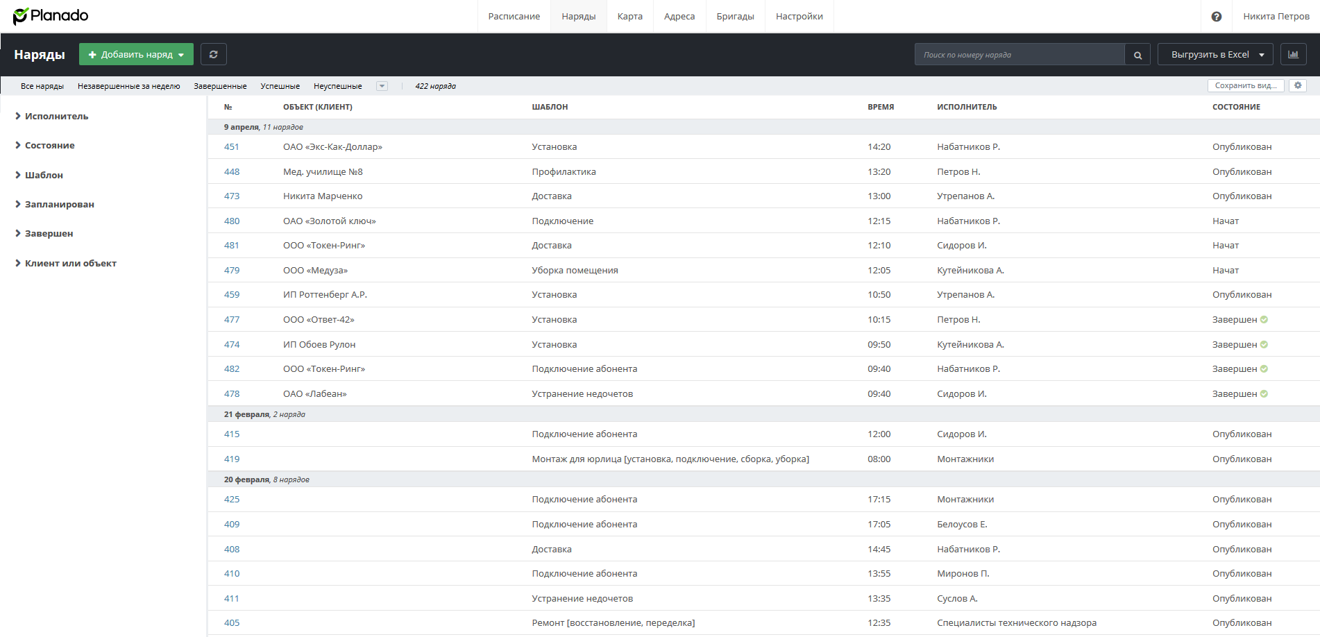 Интеграция с Planado — сервисом для организации работы мобильных сотрудников