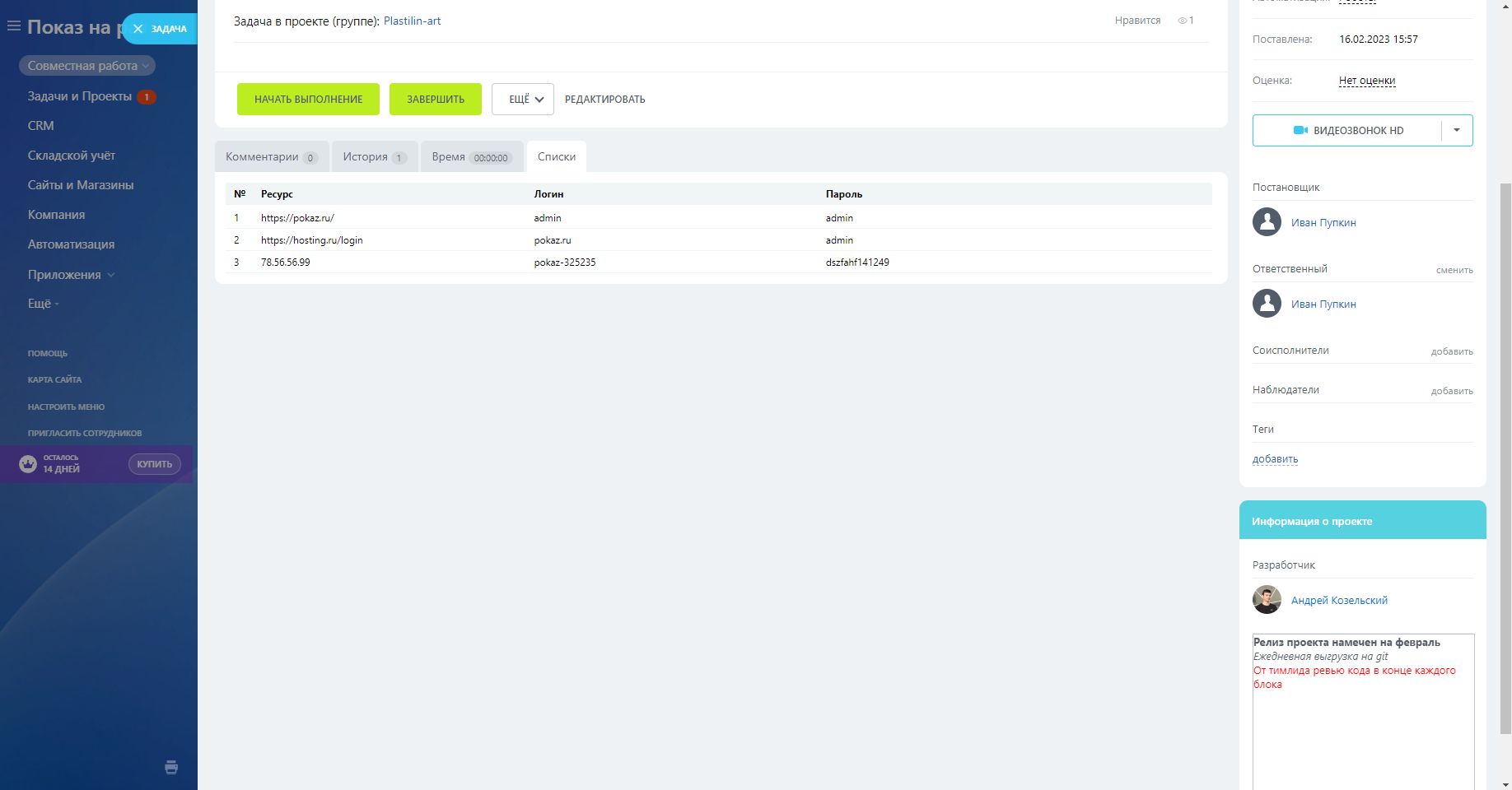 - В задачах специалистам необходимо отобразить: доступы, ключи, материалы, местоположения, любые другие ресурсы или всё то, на что хватит фантазии?
