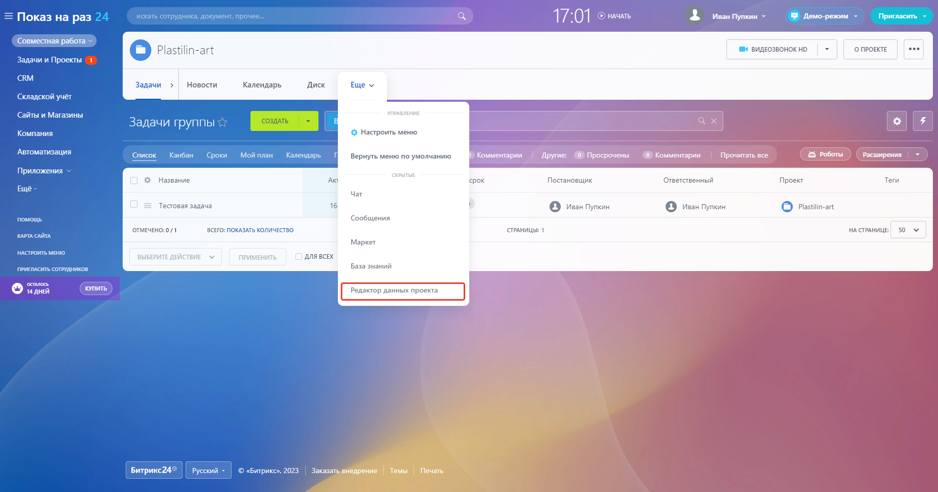 Приложение поддерживает любые виды групп и проектов, элегантно и автоматически встраивается в интерфейс задач Битрикс24. Решение соответствует общему стилю Битрикс24, цветовой схеме, шрифтам и визуально воспринимается как часть продукта.