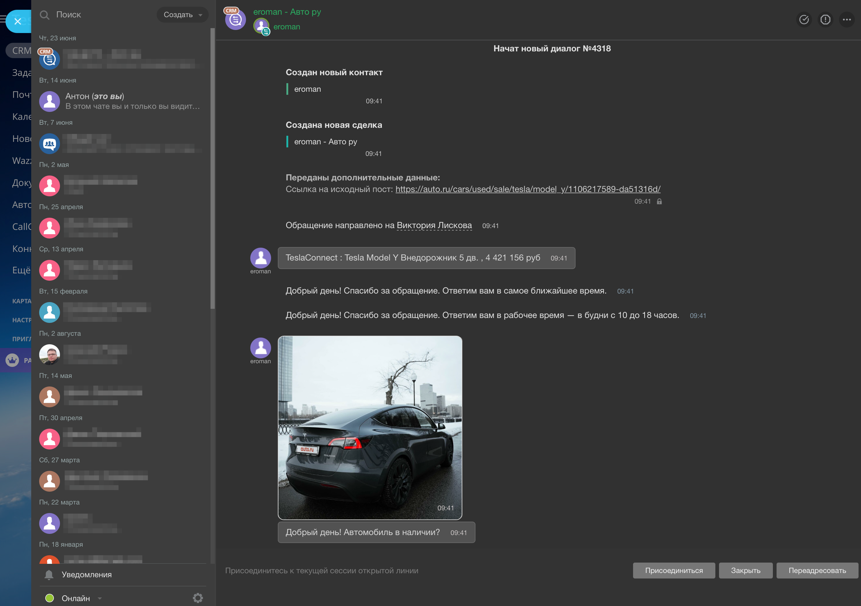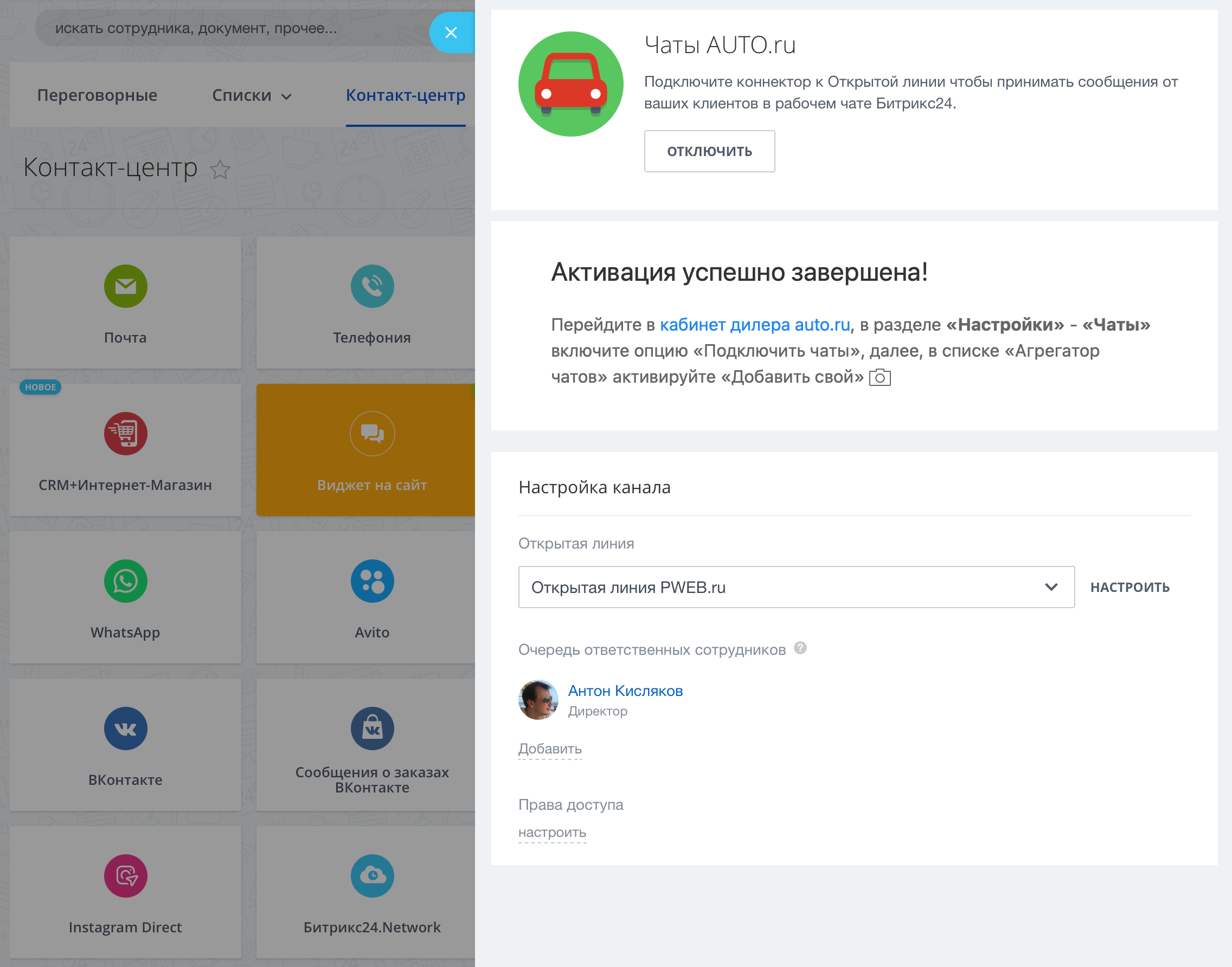 Чат с посетителем ваших объявлений на AUTO.ru - теперь подключен к Битрикс24 в Контакт-центр.