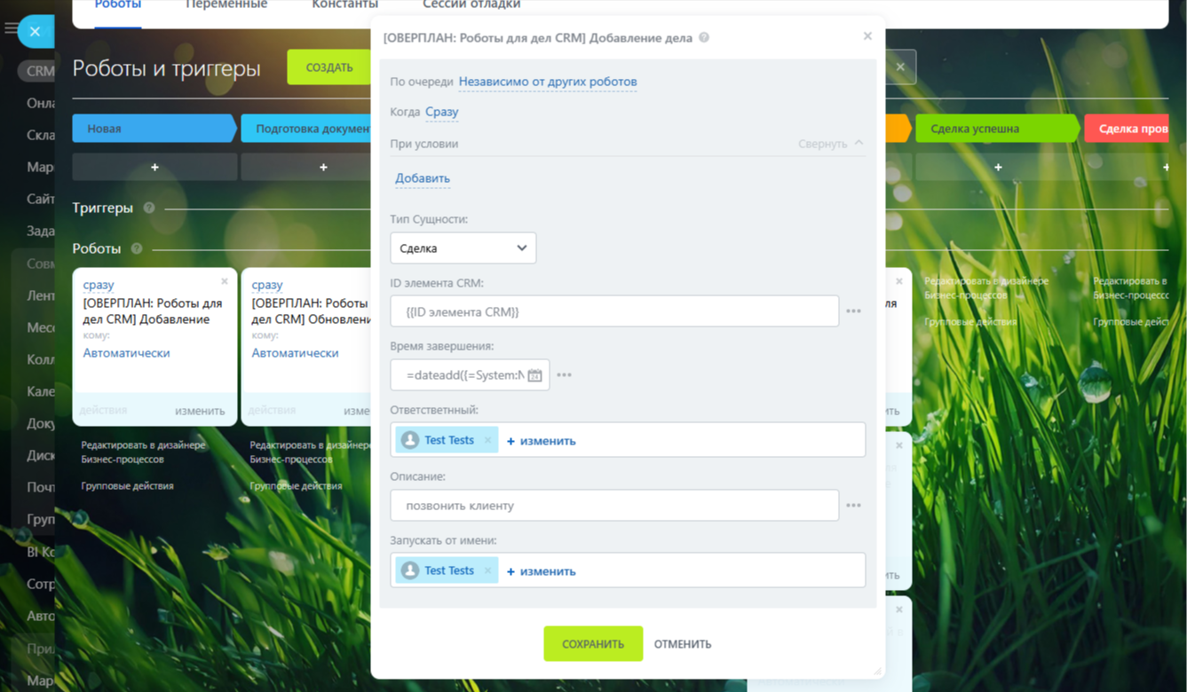 Коллекция роботов / активити бизнес-процессов, которые позволяют работать с делами CRM