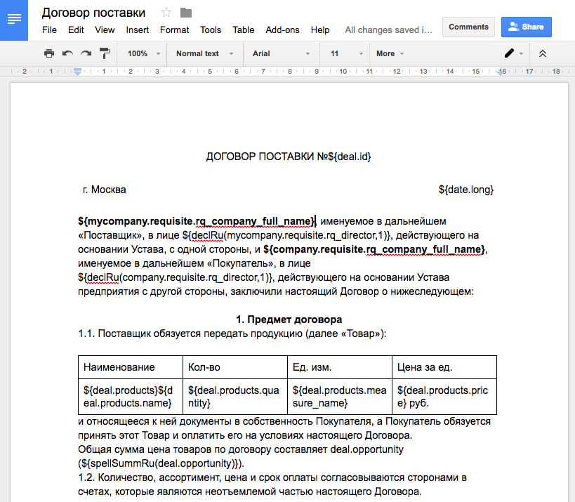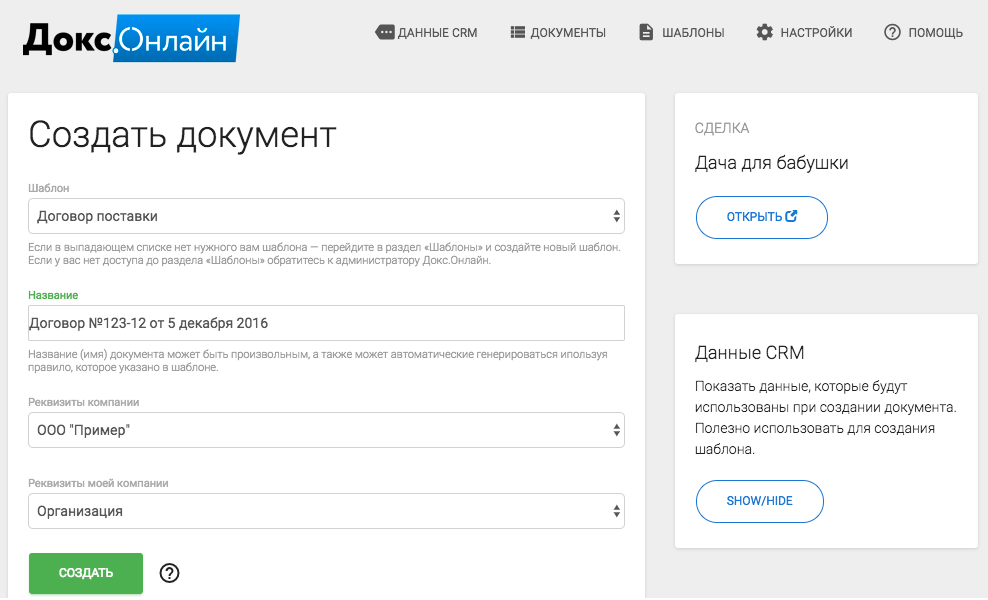 Докс.Онлайн — конструктор документов на базе шаблонов в Google Docs. Генерируйте документы (договоры, акты, письма и т.д.) на основе данных Битрикс24 в 2 клика.