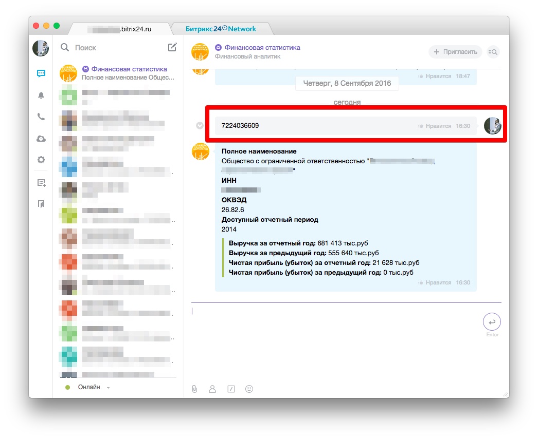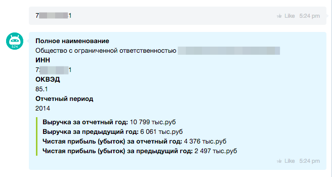 Чат-бот Финансовая статистика контрагента осуществляет поиск по базе российских организаций и индивидуальных предпринимателей.