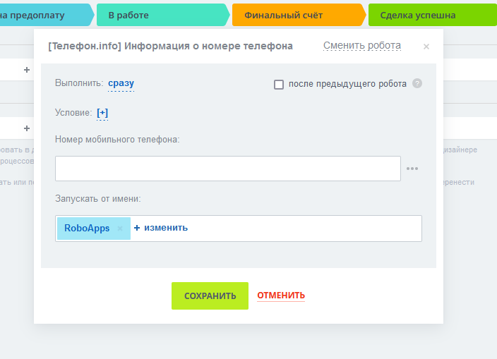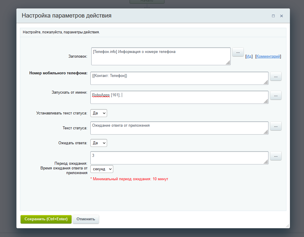 2. Активити и робот для бизнес-процессов "[Телефон.info] Информация о номере телефона":