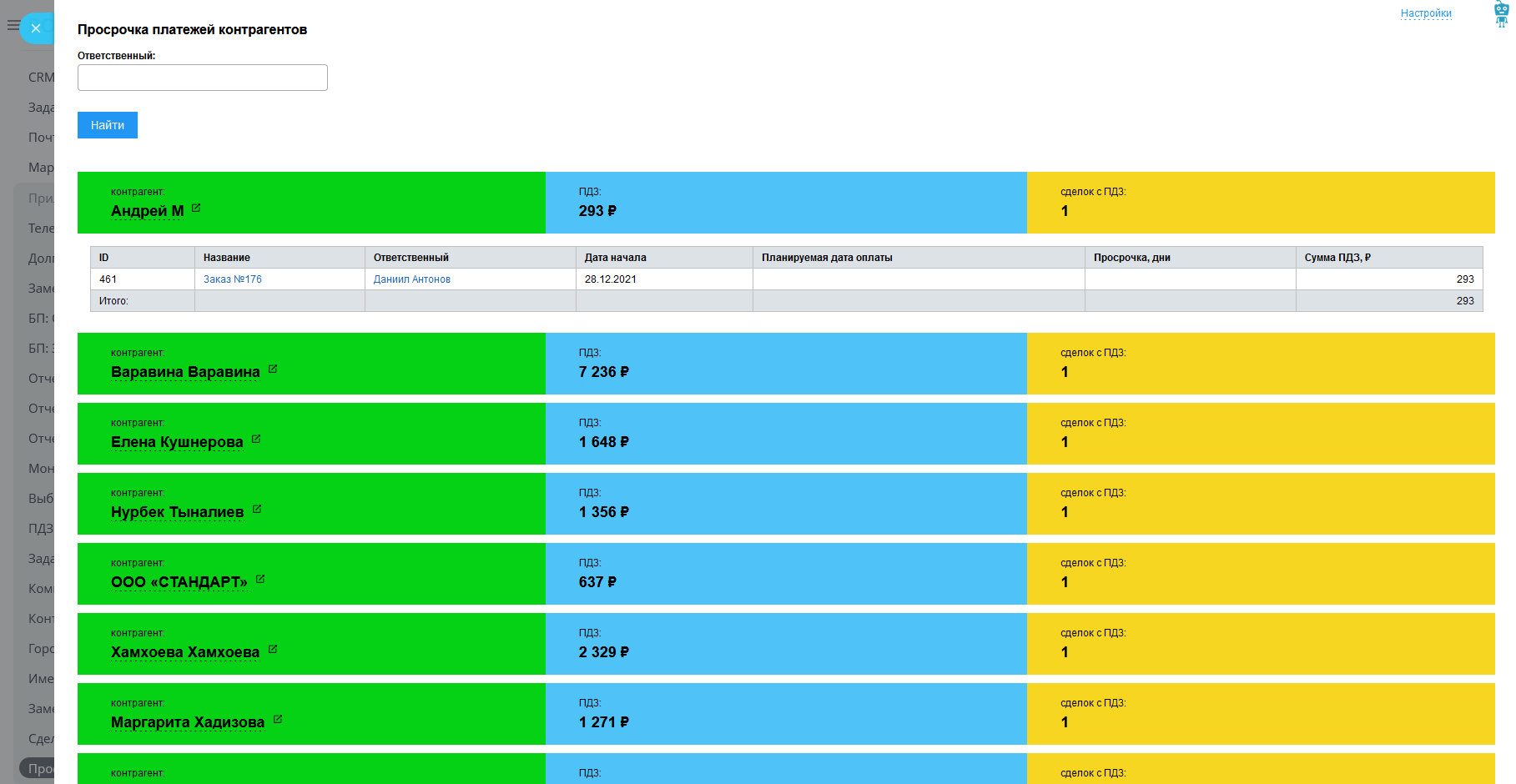 Приложение показывает задолженность ваших клиентов по сделкам (ПДЗ).