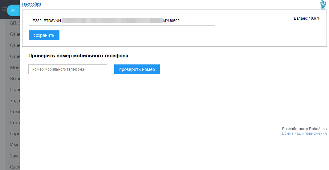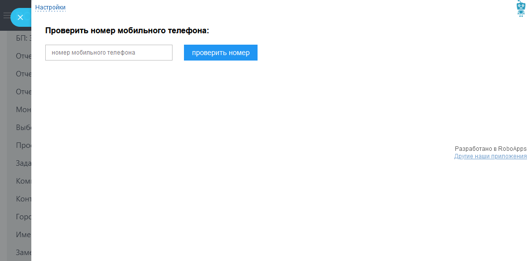 1. Самостоятельная страница приложения, на которой можно в ручном режиме проверять номер мобильного телефона.