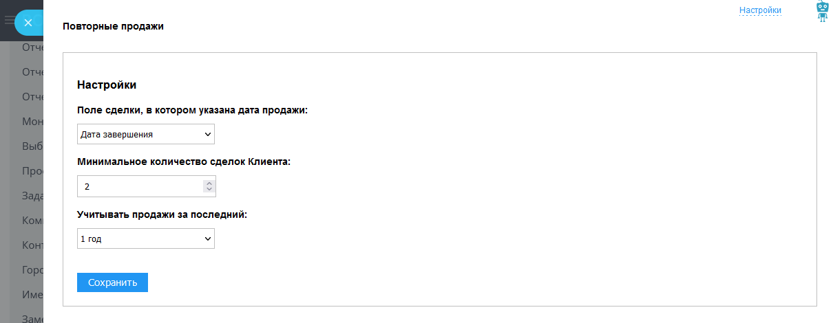 1. Указать поле сделки, в котором заполняете дату продажи.