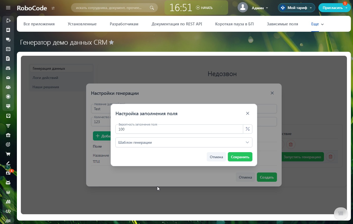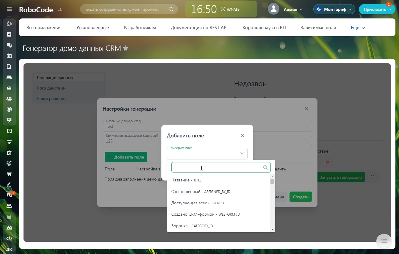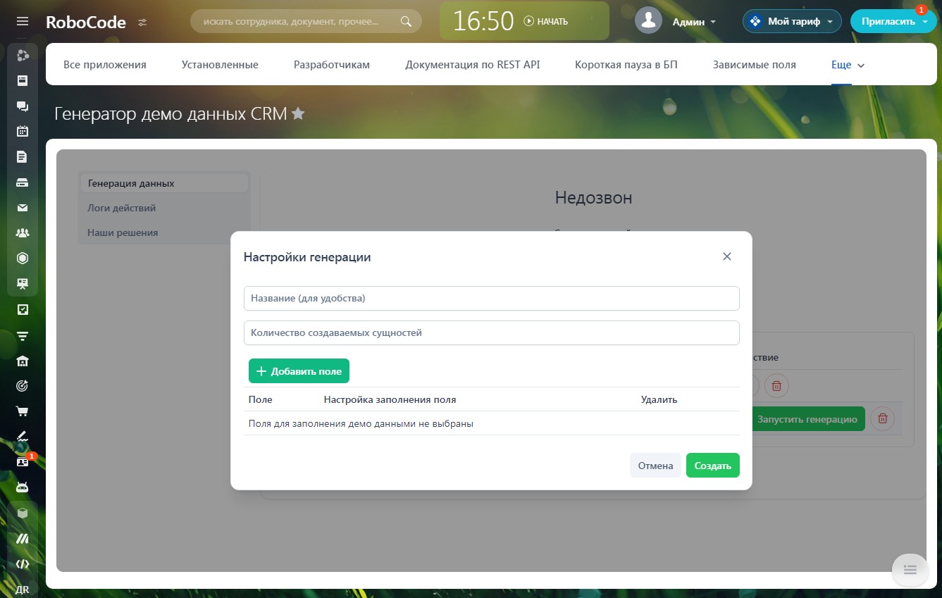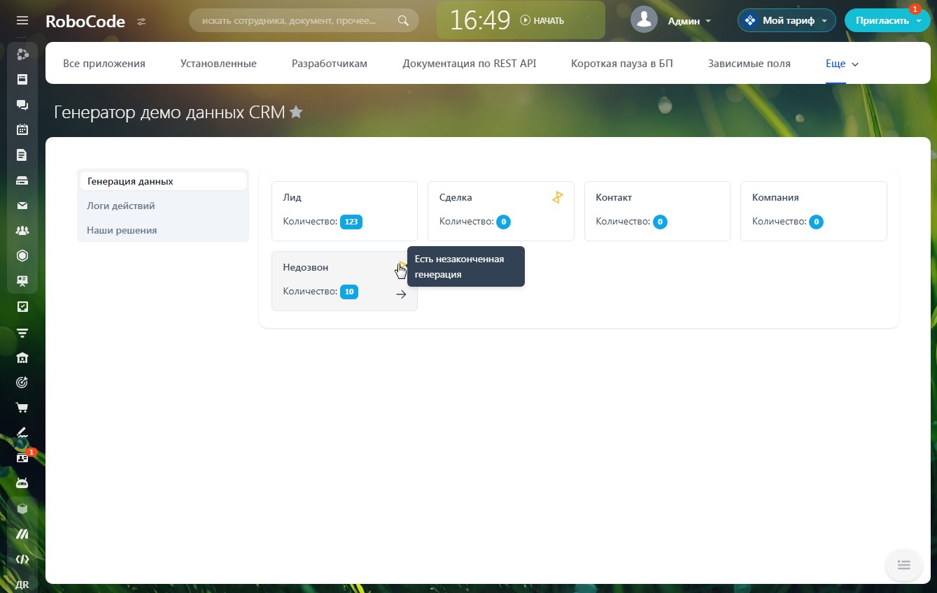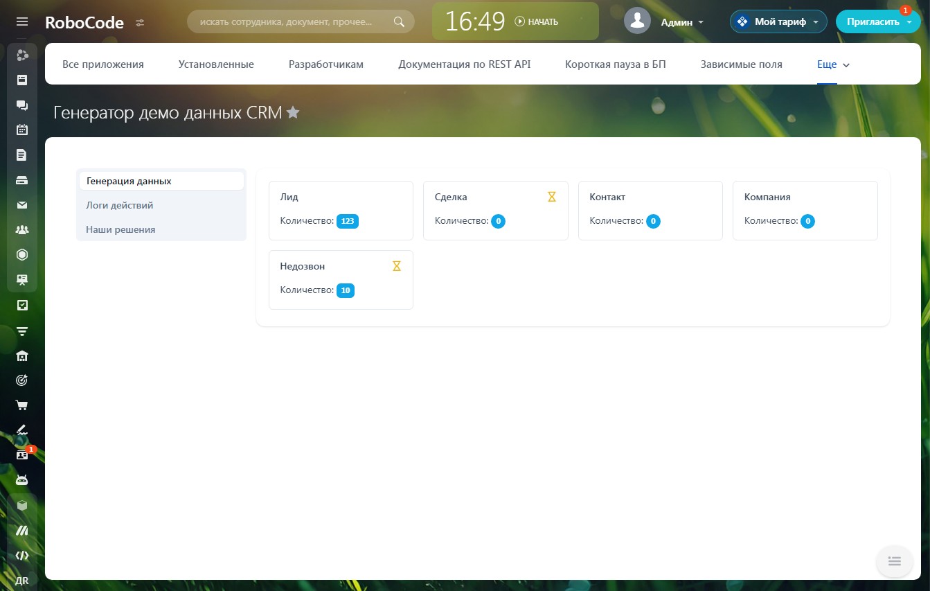 Генератор демо данных CRM - с помощью этого приложения можно быстро и легко создать большое кол-во демо данных в CRM. Приложение будет полезно в разных ситуациях - от настройки CRM интеграторами до обучения сотрудников в компании.