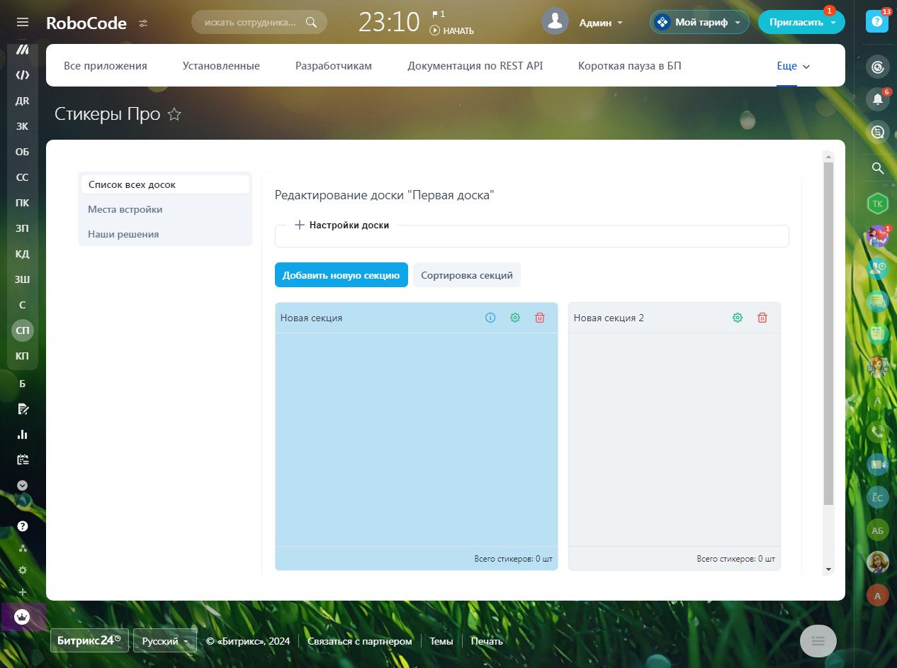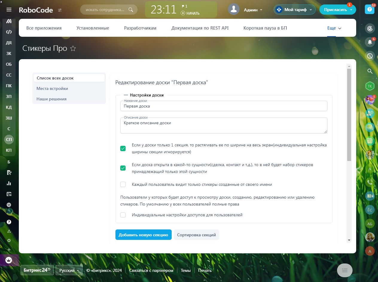 - Настройка внешнего вида доски и секций