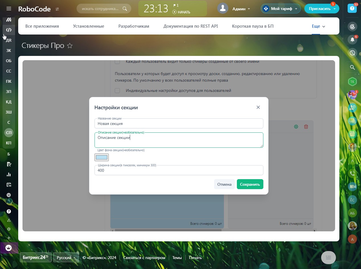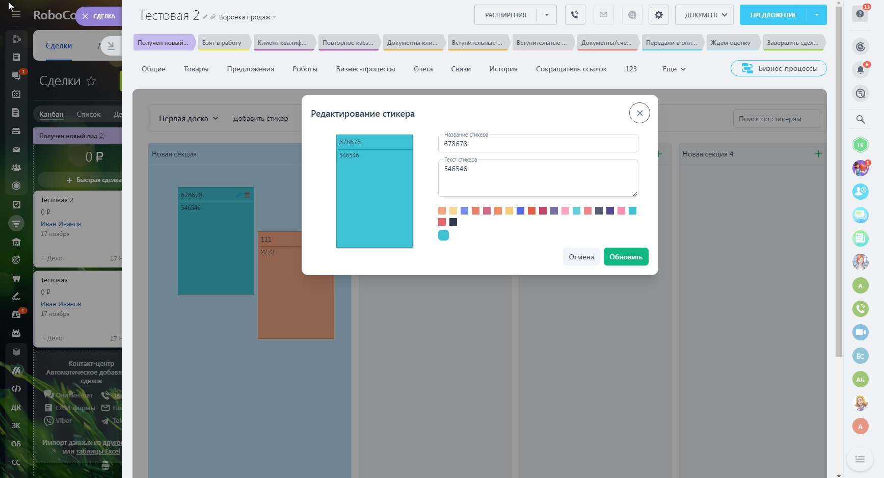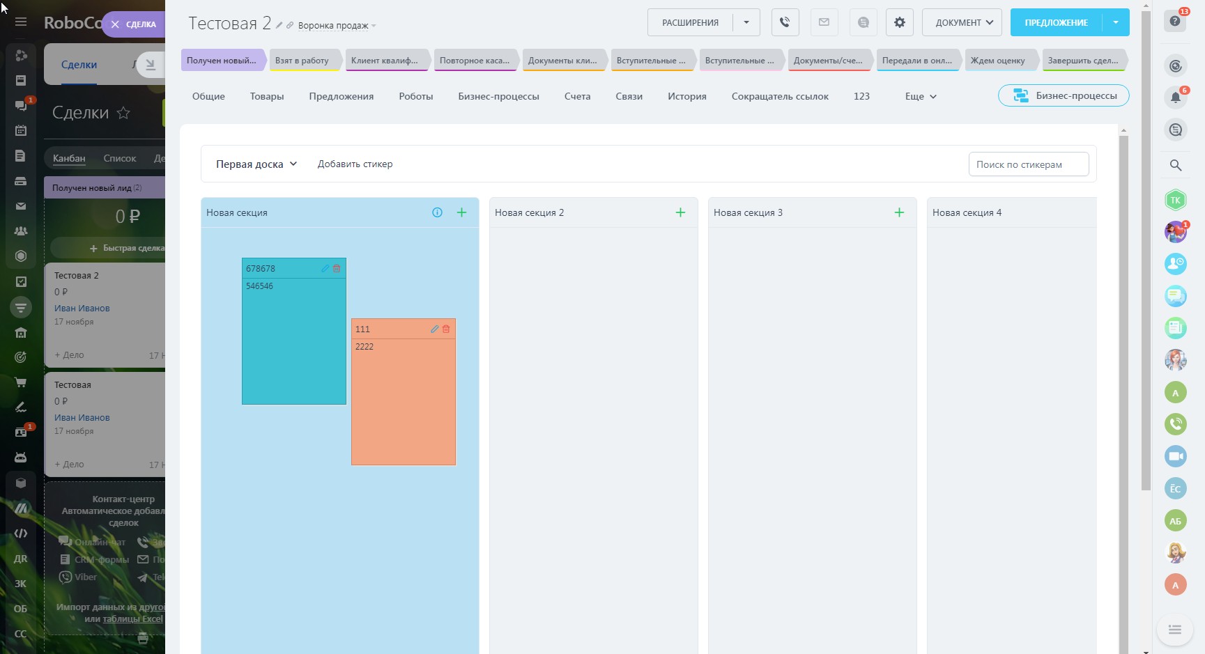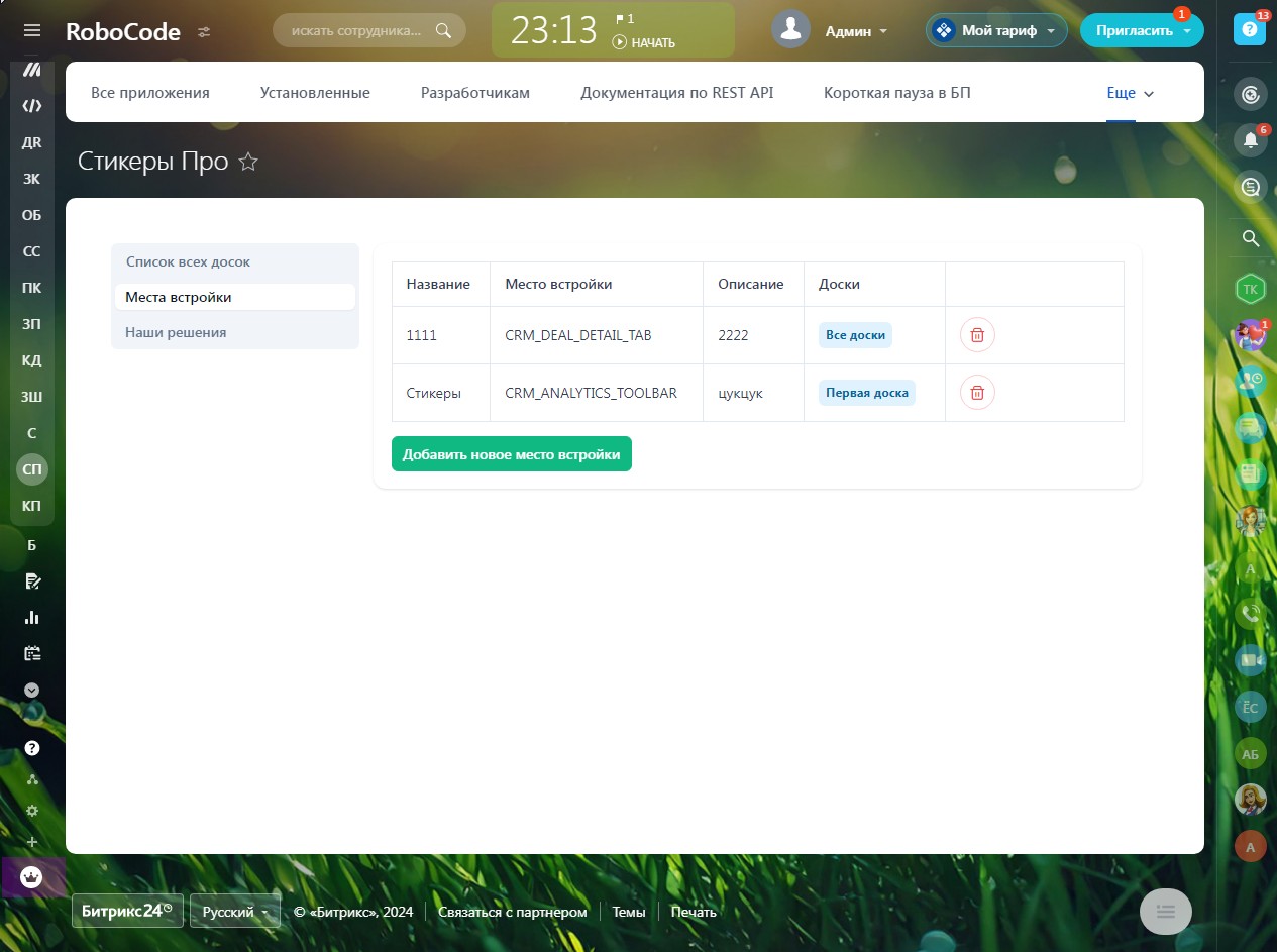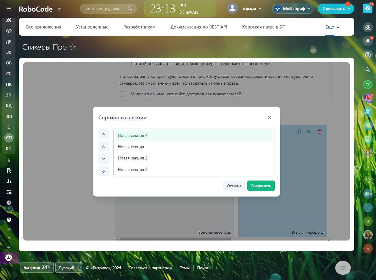 - Сегментирование созданных стикеров по сущностям CRM и по конкрентным элементам сущностей (сделки, контакты и т.д.)