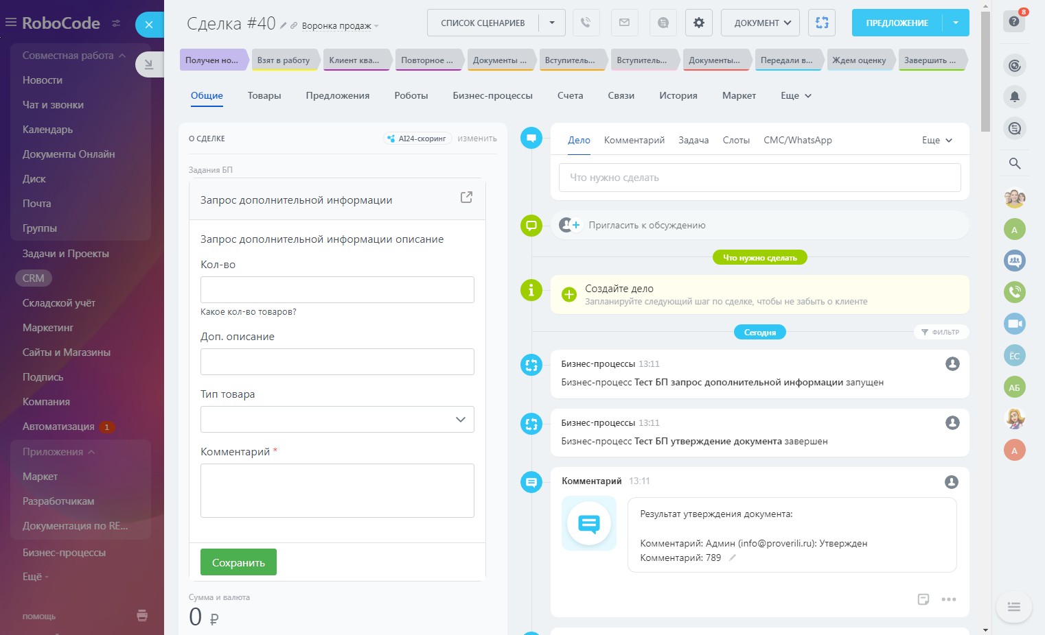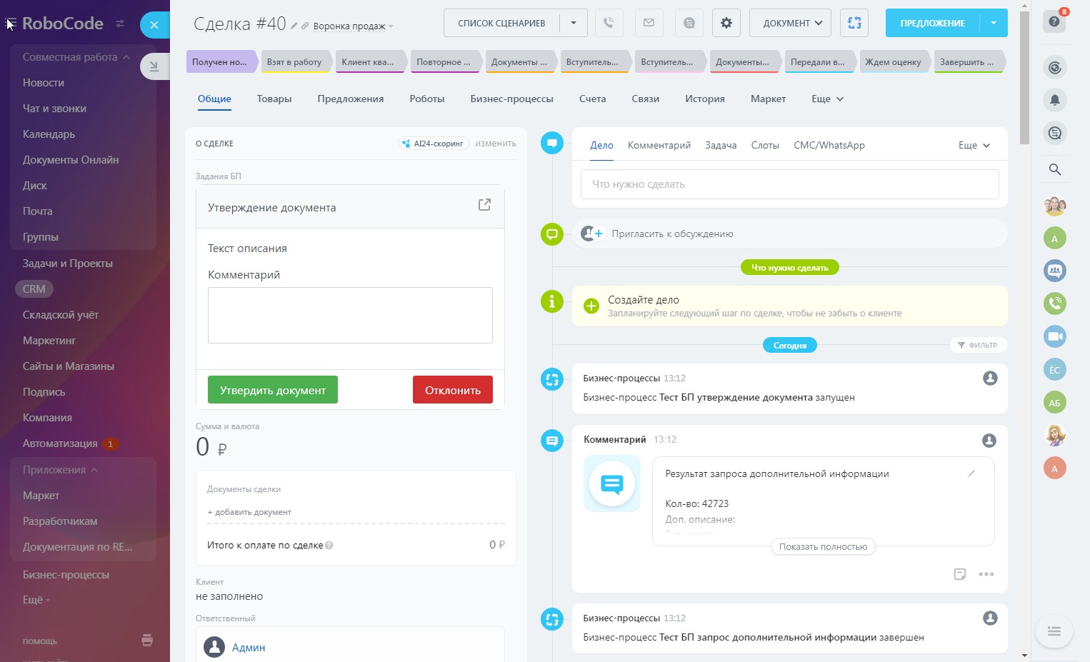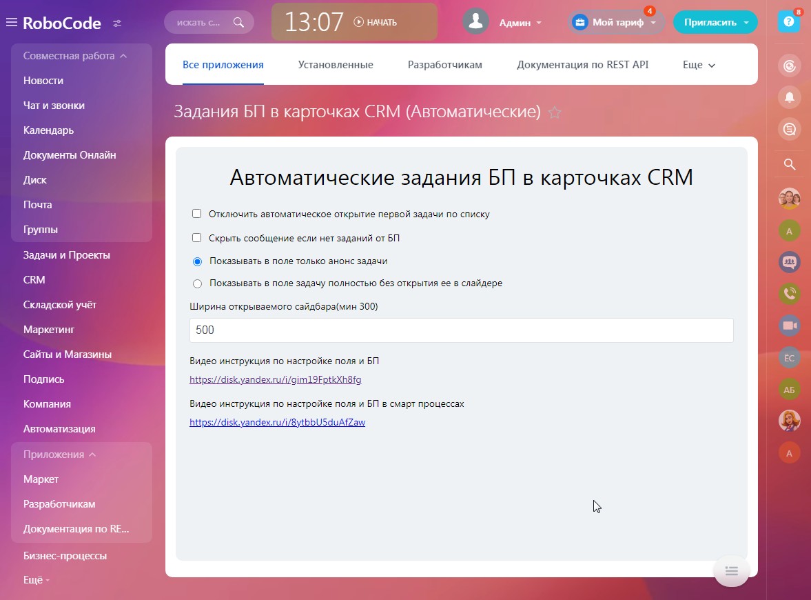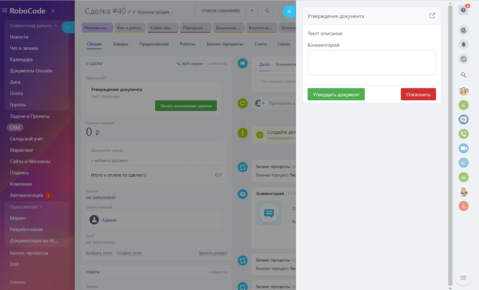 Приложение “Задания БП в карточках CRM” поможет выполнять задания от БП в одном окне, без перезагрузки страницы или других дополнительных дейтсвий.