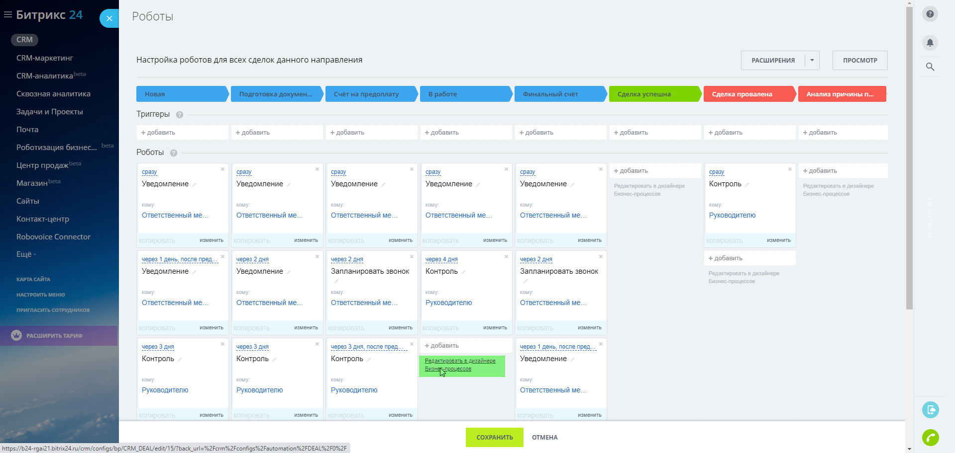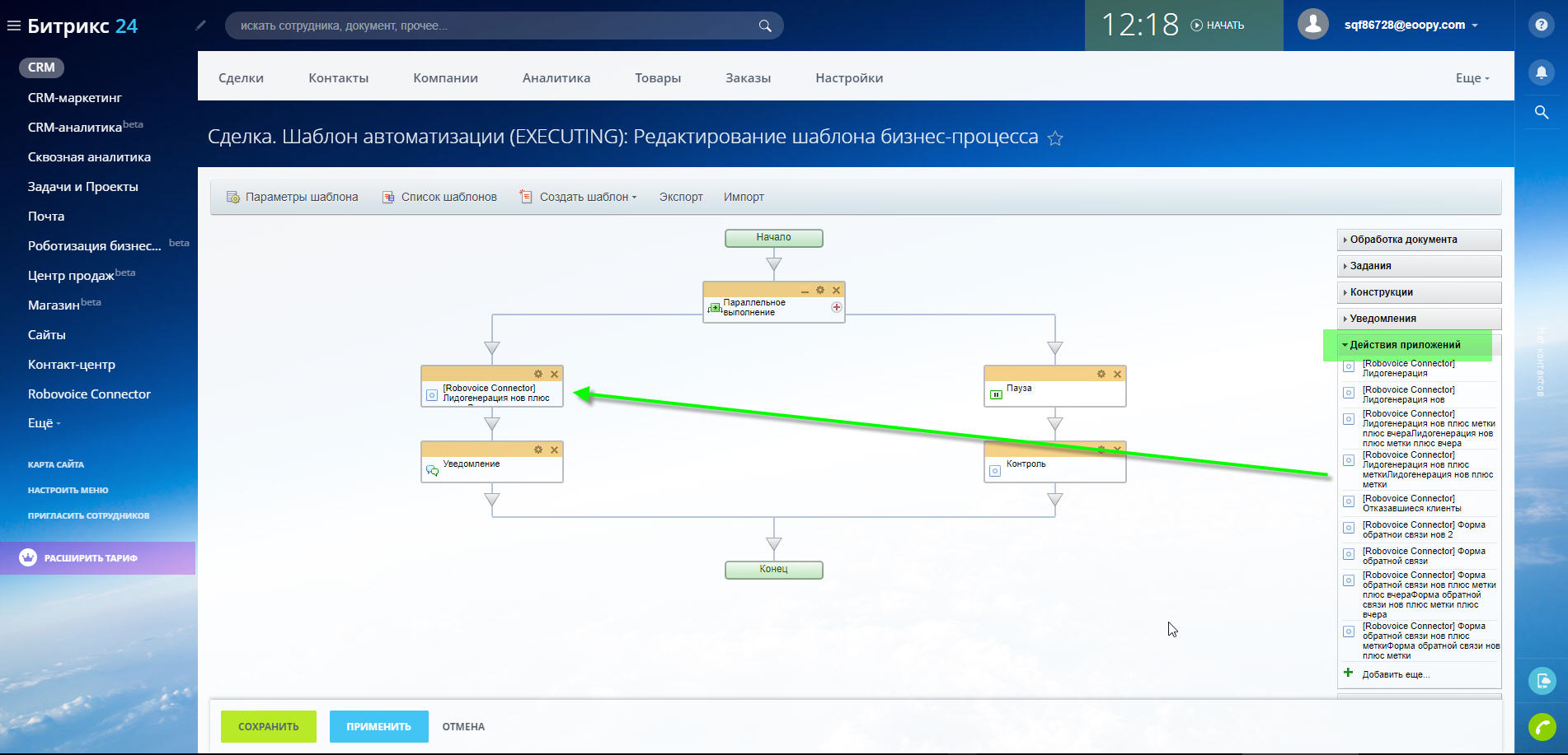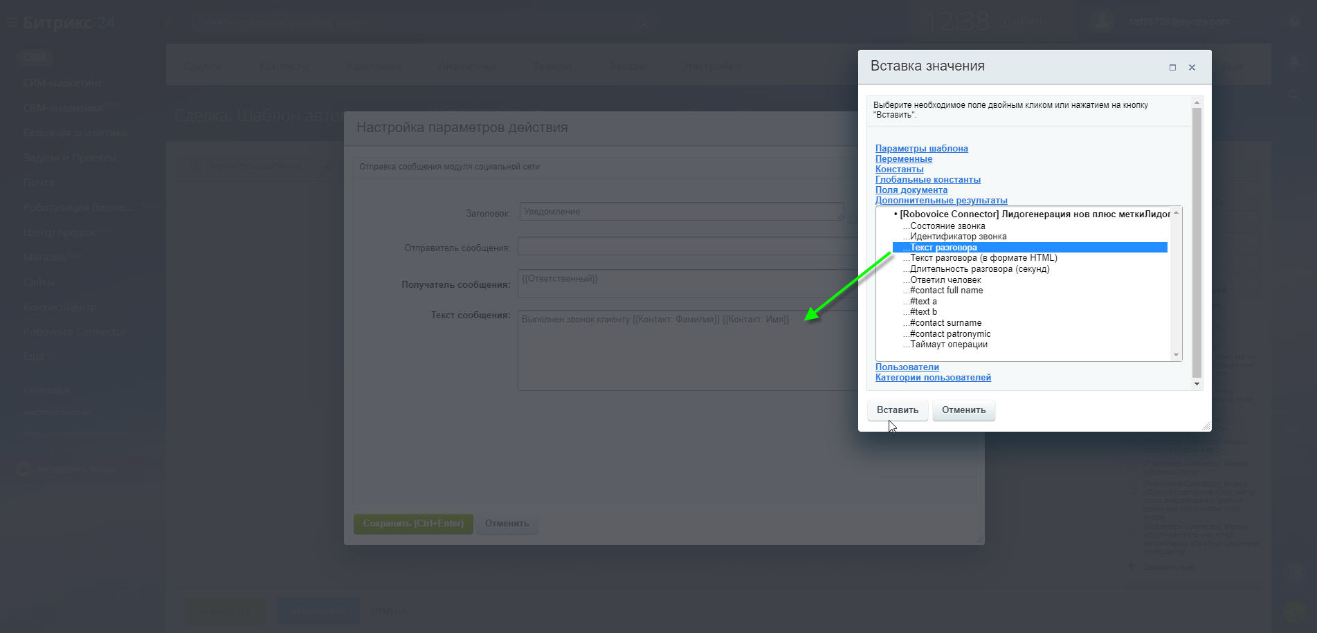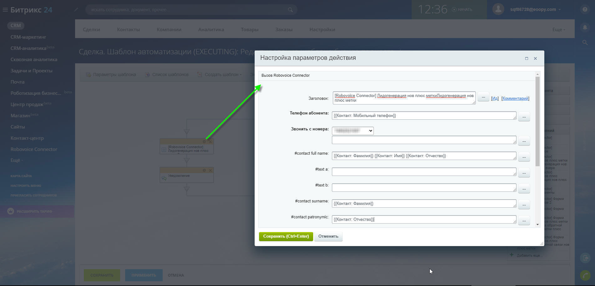5. Настраиваете сценарии для обзвона, использование данных из карточек, соответствие полей Bitrix ипараметров Robovoice.
