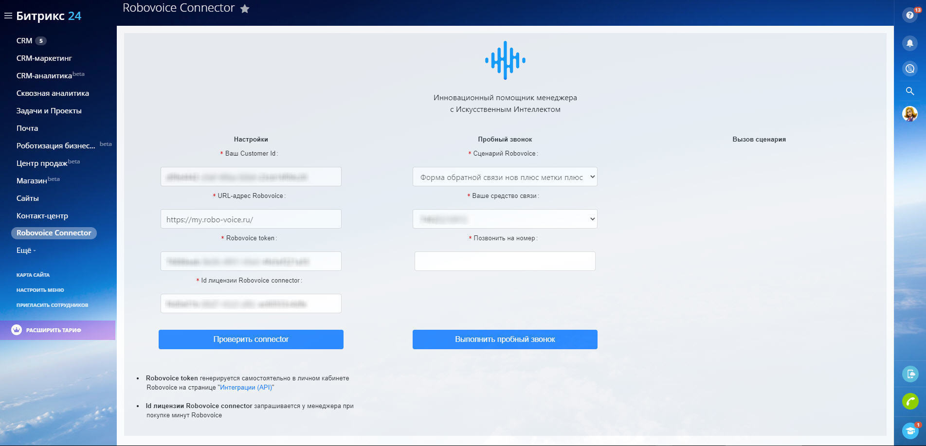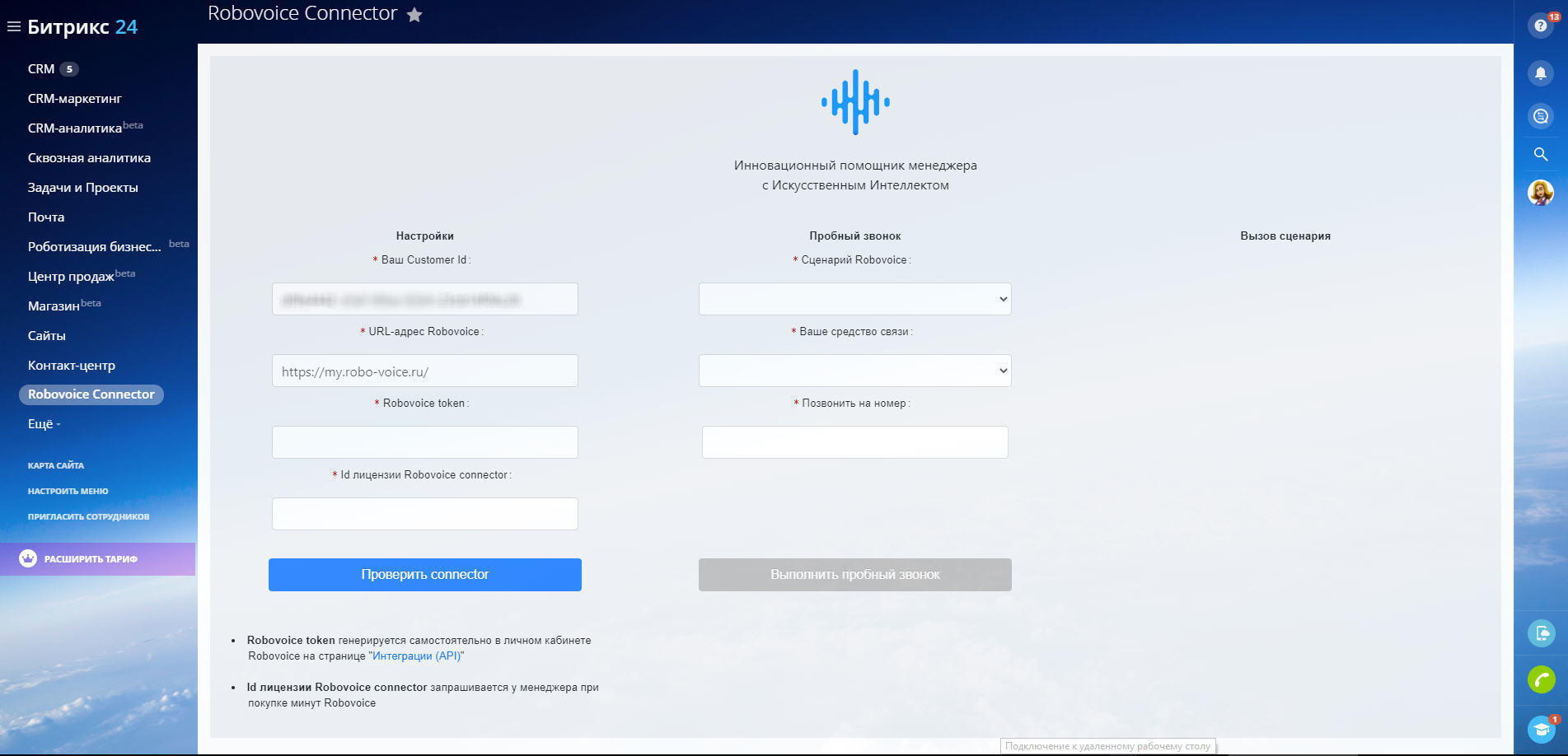 2. Устанавливаете Robovoice коннектор в Bitrix24;