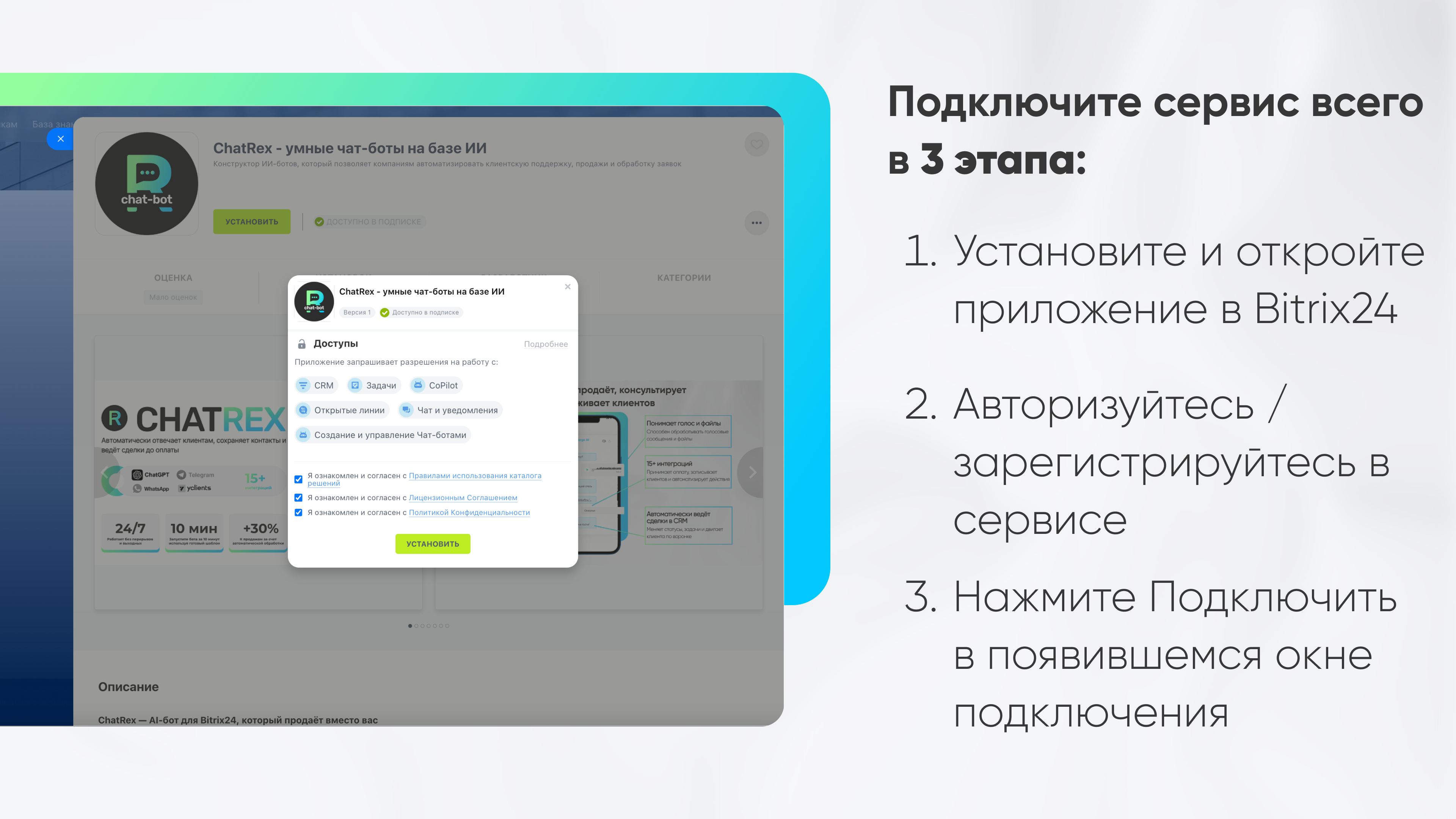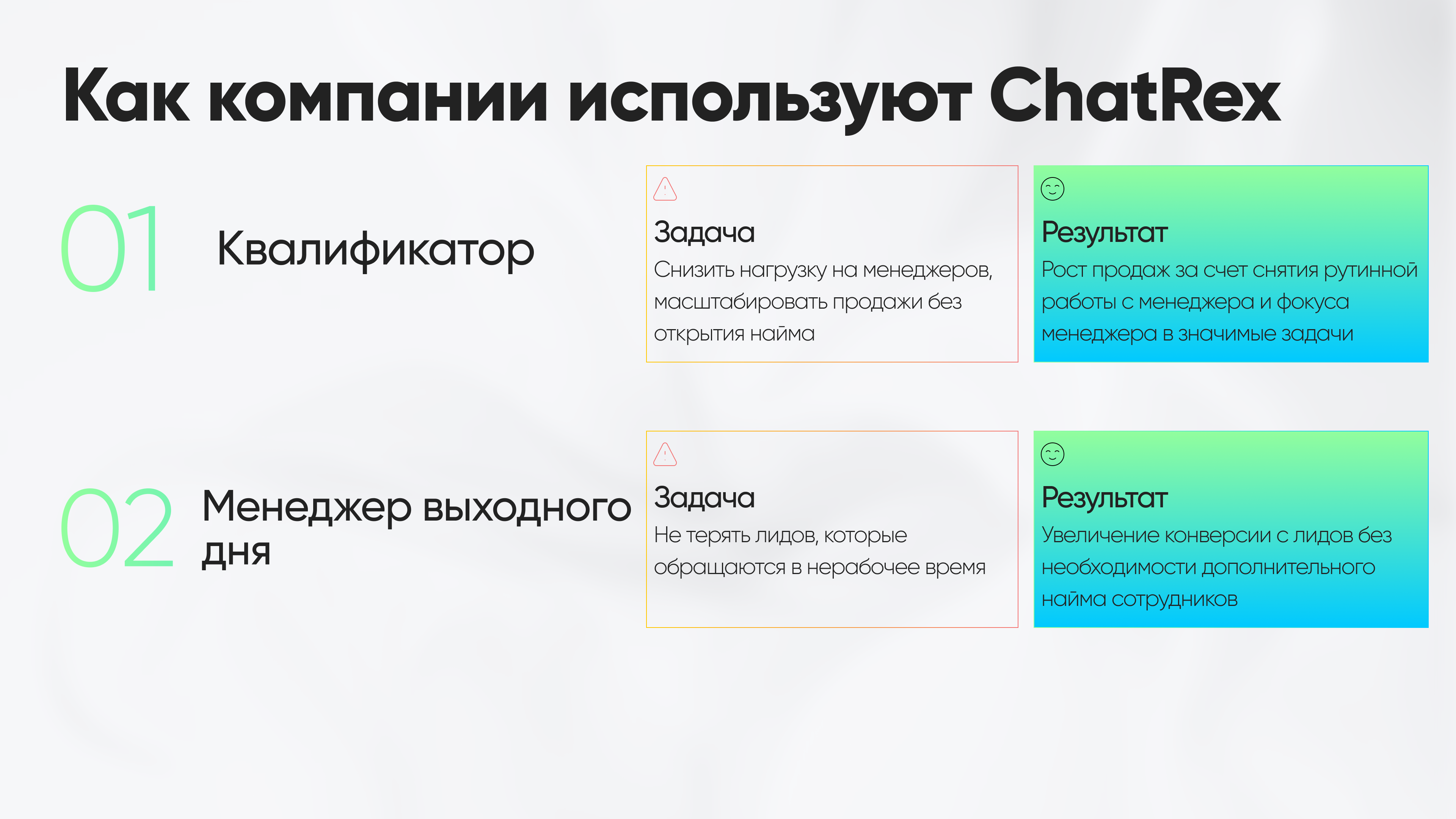 Попробуйте ChatRex прямо сейчас и почувствуйте, как Bitrix24 начнёт продавать больше без дополнительных усилий.