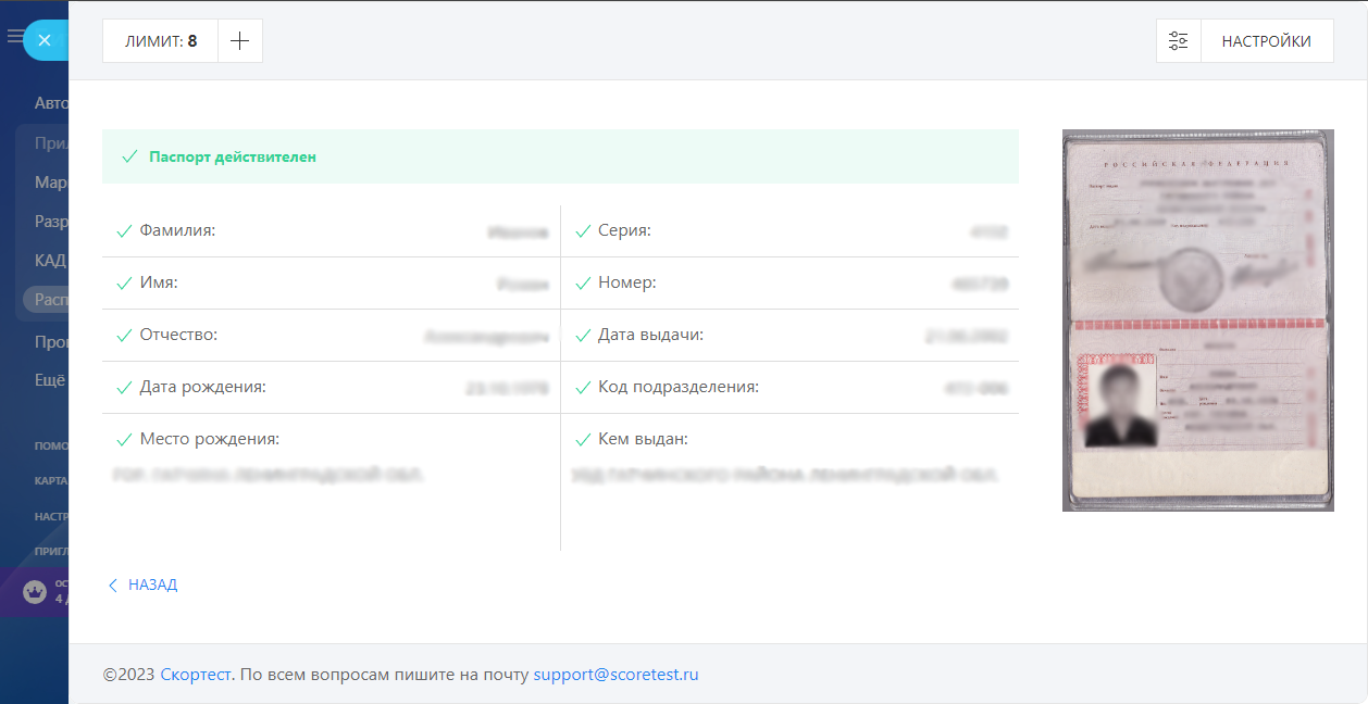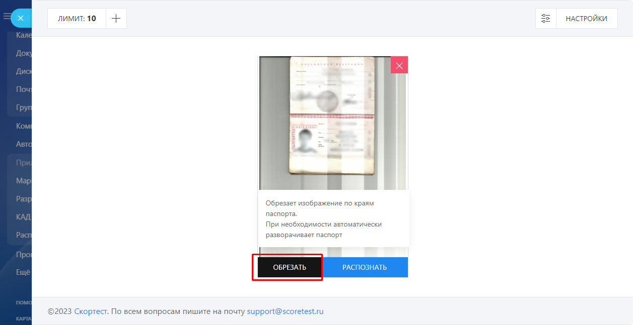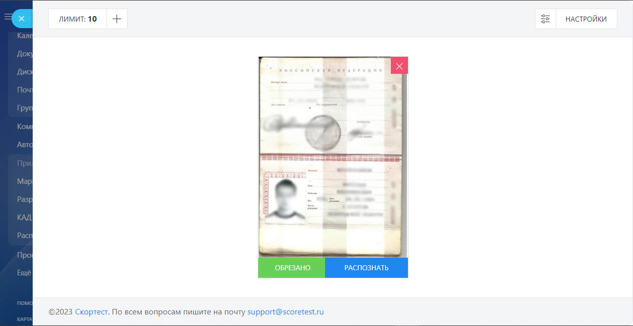 Распознавание текста на фото паспорта РФ, авторазворот паспорта, обрезка лишнего пространства, вырезка фото и подписи из паспорта, сохранение данных в CRM.