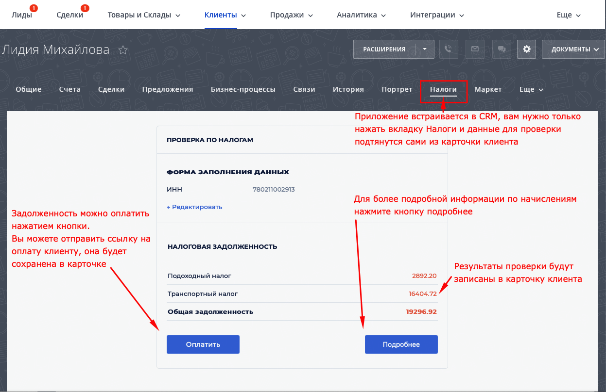 - Проверка налоговой задолженности физ. лица по ИНН и паспортным данным