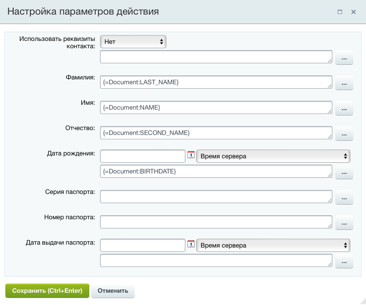 - Настройка полей с данными необходимыми для проверки