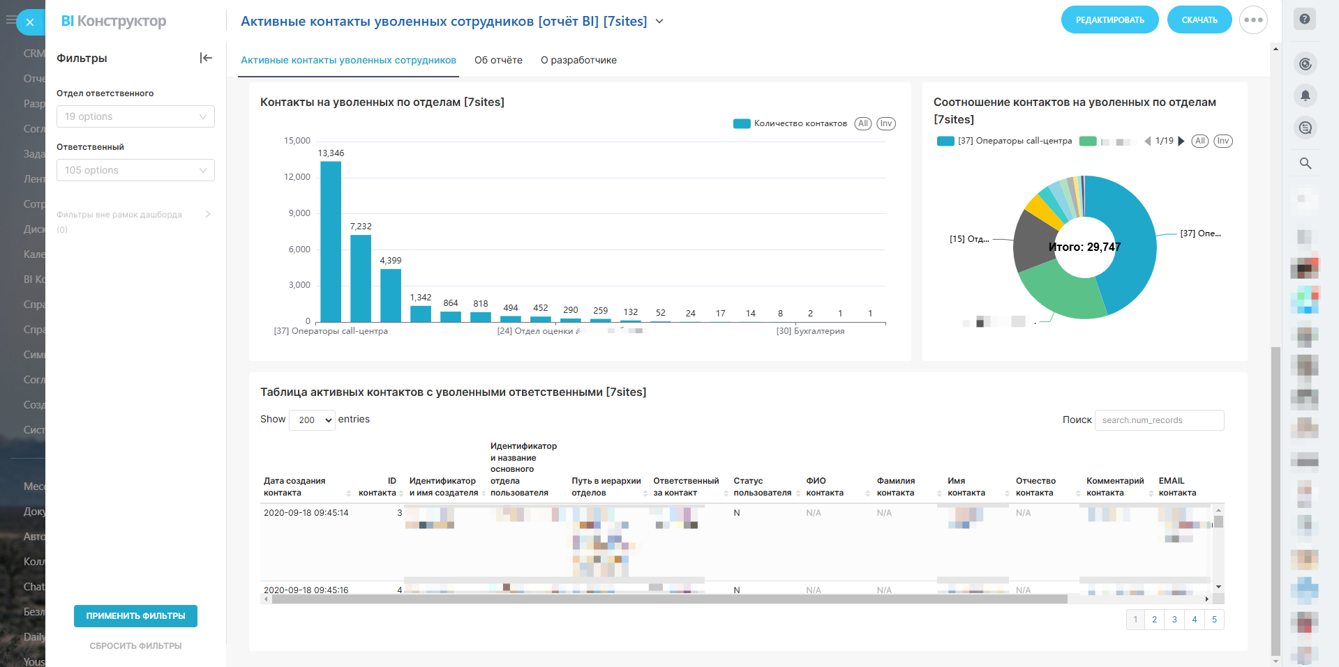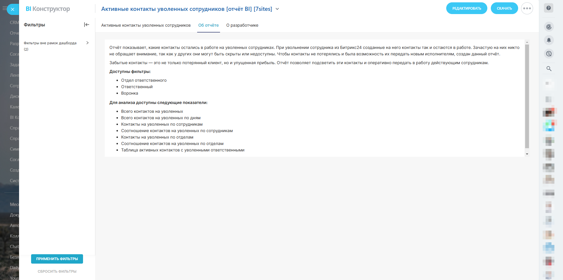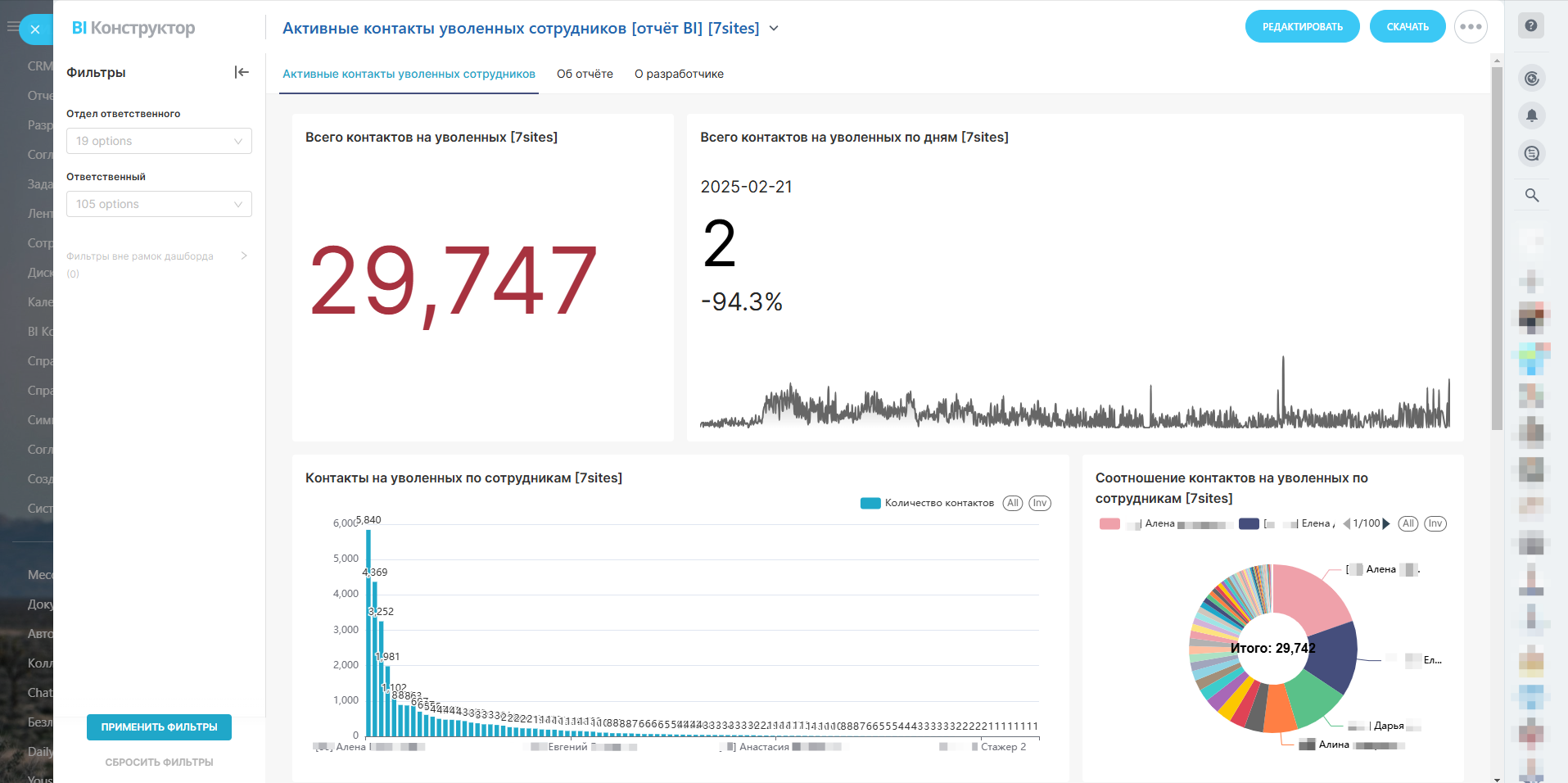 Активные контакты уволенных сотрудников [отчёт BI]