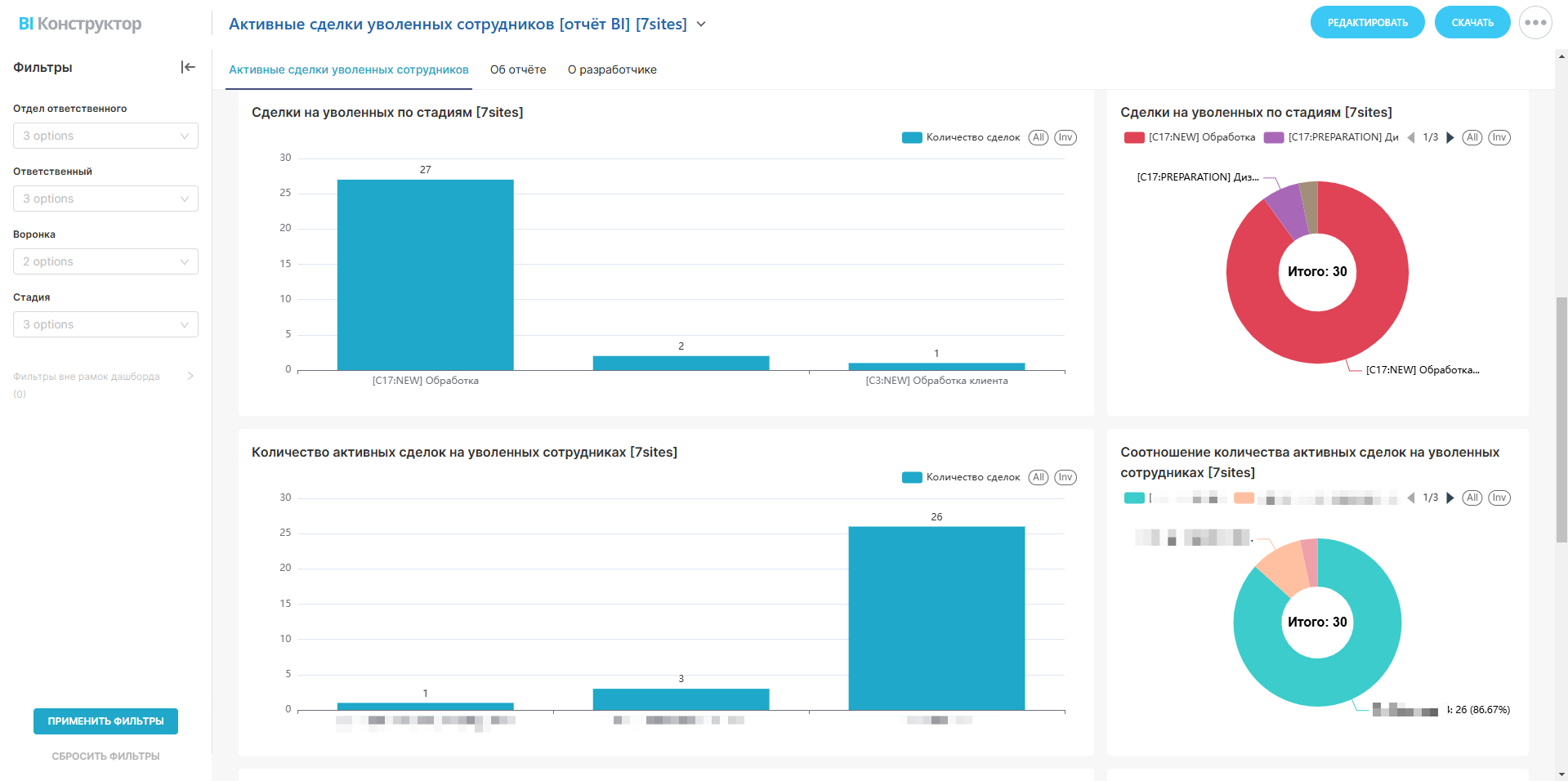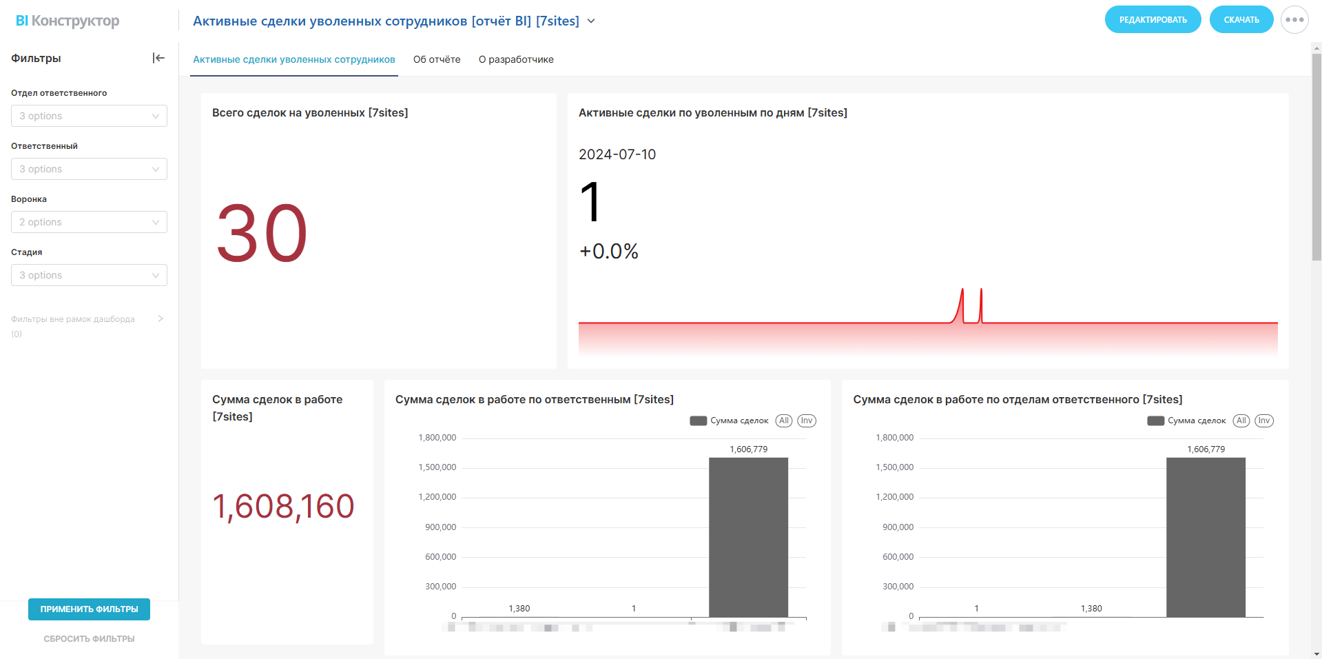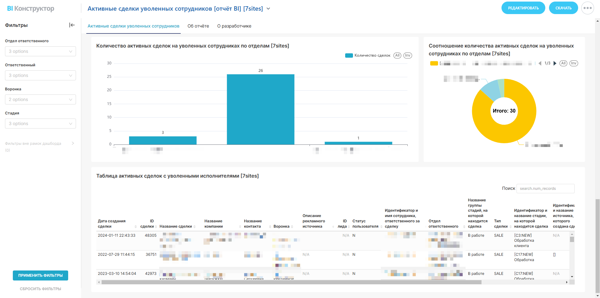 Активные сделки уволенных сотрудников [отчёт BI]
