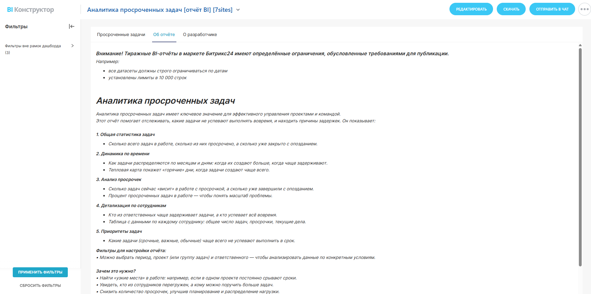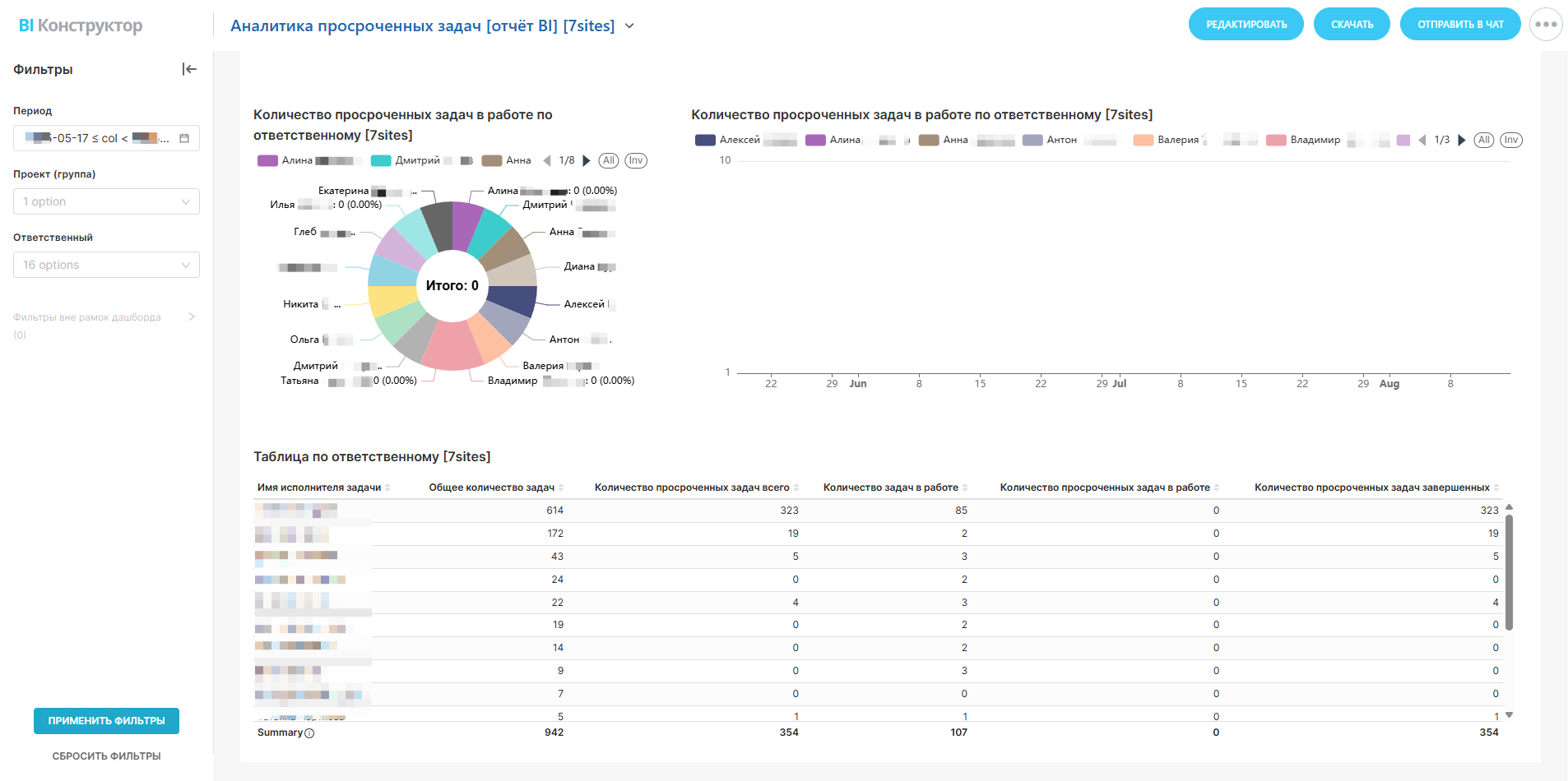 Отчёт позволяет проводить быструю аналитику по просроченным задачам