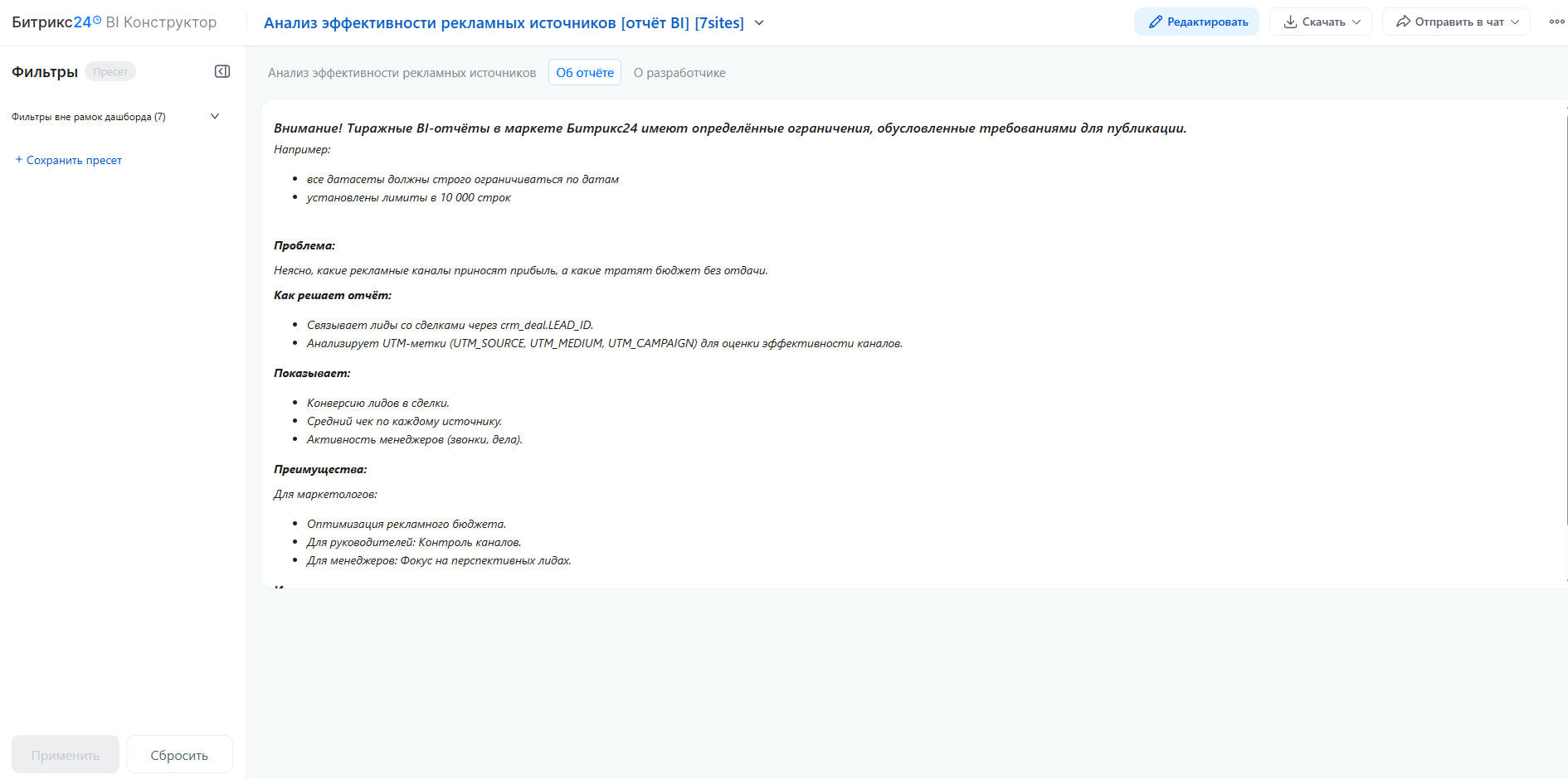 Отчёт помогает перераспределить бюджет в пользу самых эффективных каналов и увеличить прибыль.
