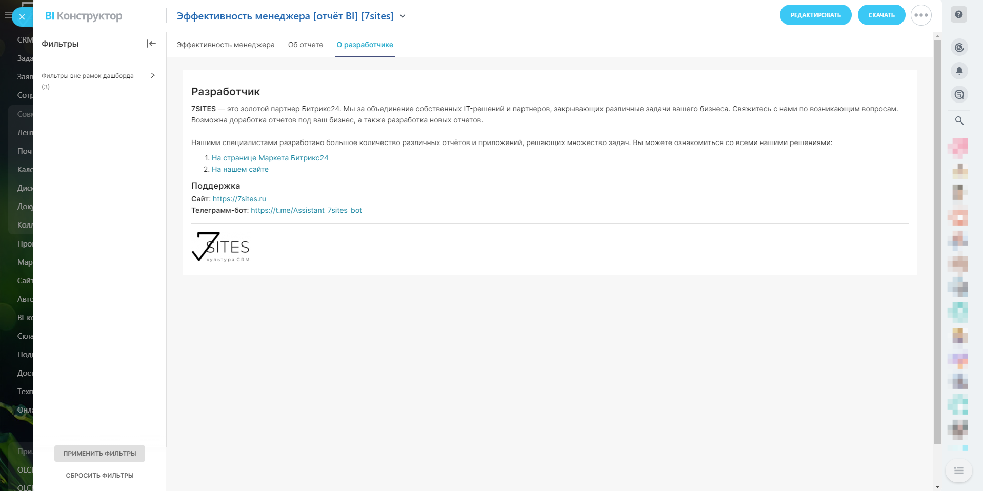 Представляем вам уникальный инструмент для анализа эффективности работы ваших менеджеров по продажам — отчёт "Эффективность менеджера", созданный в BI-конструкторе Битрикс24. Этот отчёт наглядно демонстрирует вклад каждого специалиста в общие результаты компании, позволяя вам принимать более обоснованные решения на основе данных.