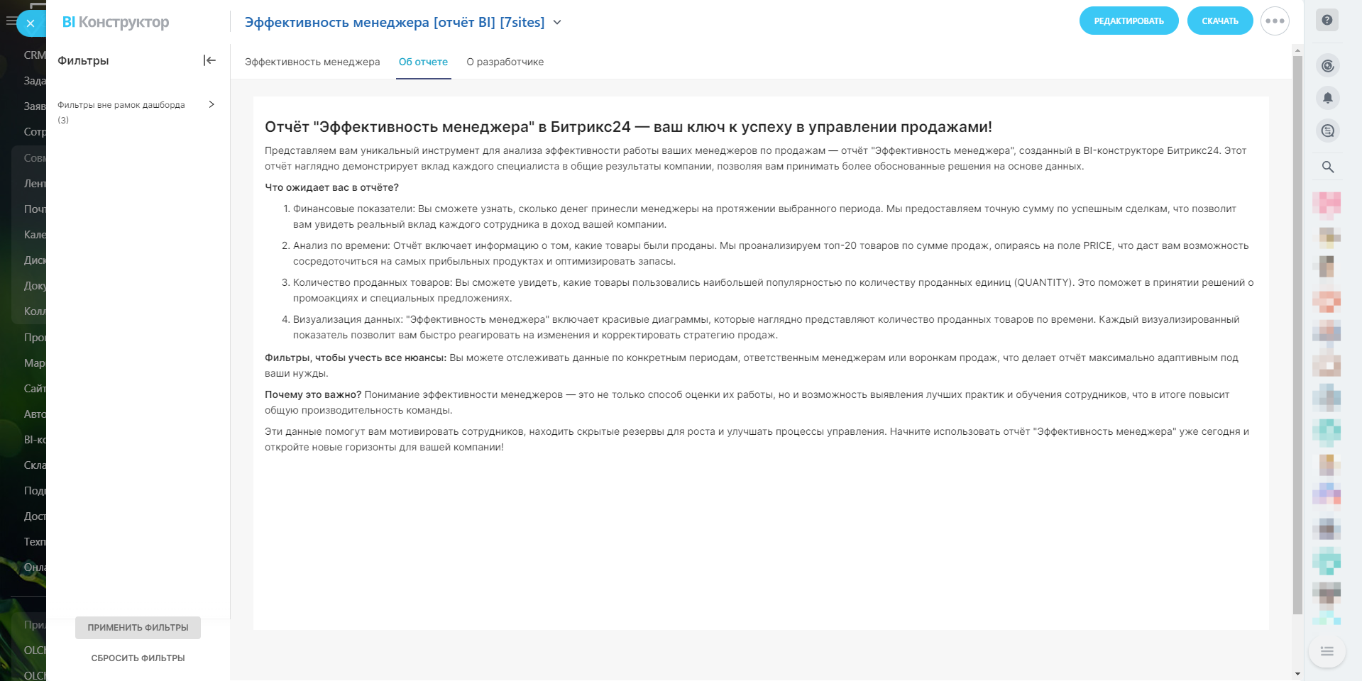 Отчёт "Эффективность менеджера" в Битрикс24 — ваш ключ к успеху в управлении продажами!