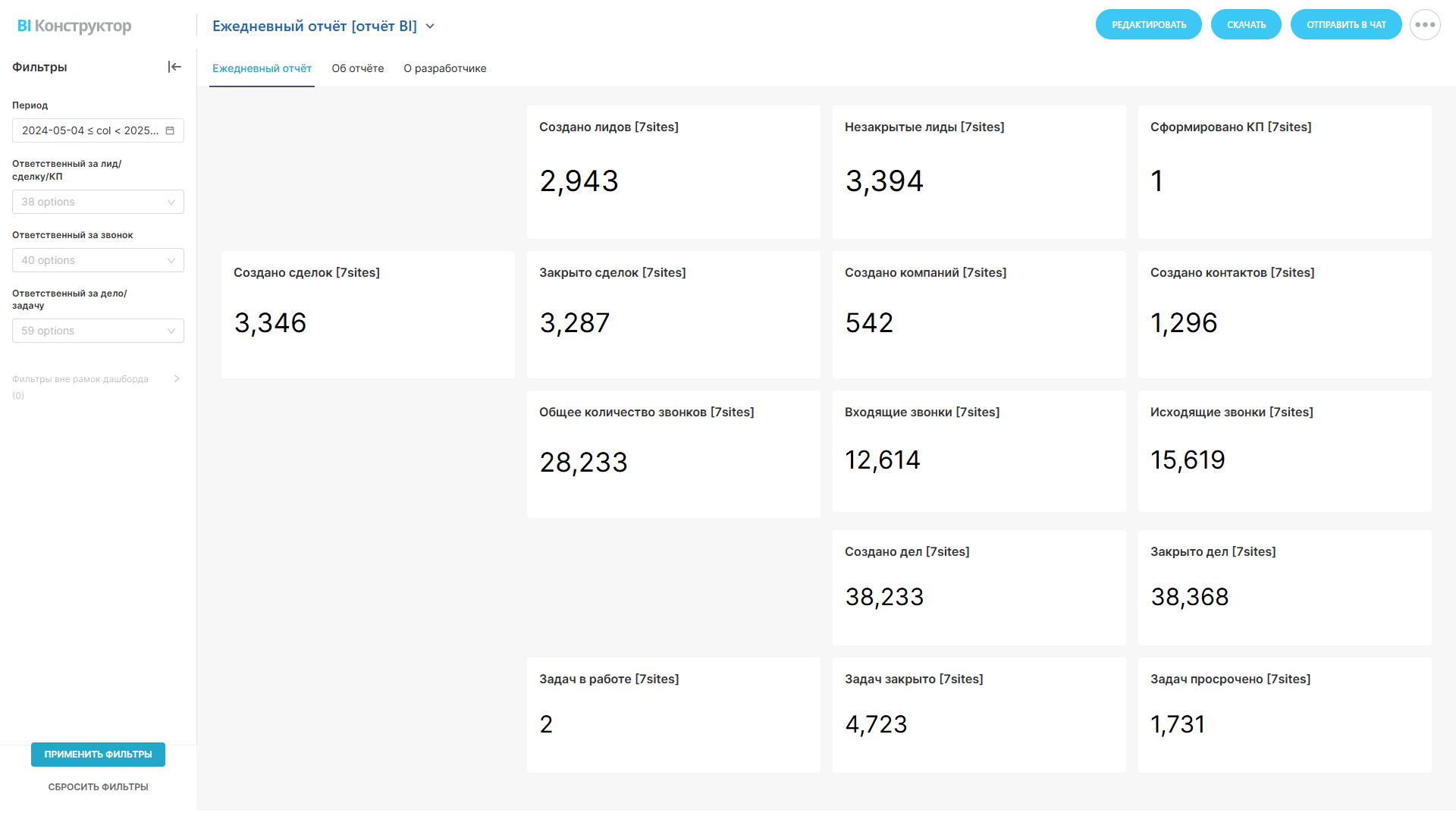 Ответственного за лиды, сделки, звонки или задачи — чтобы проверить конкретного сотрудника.