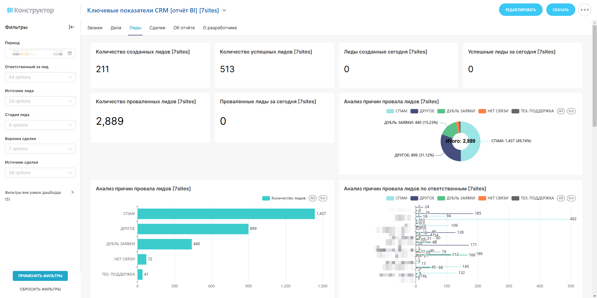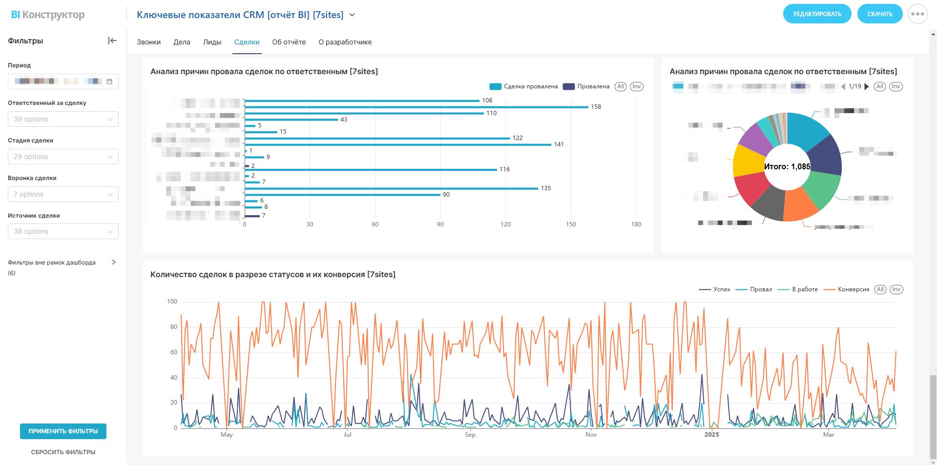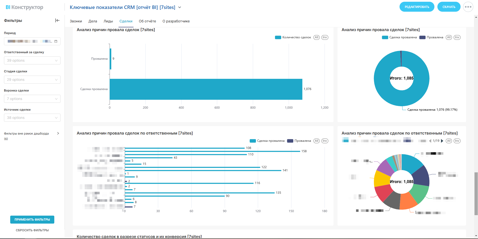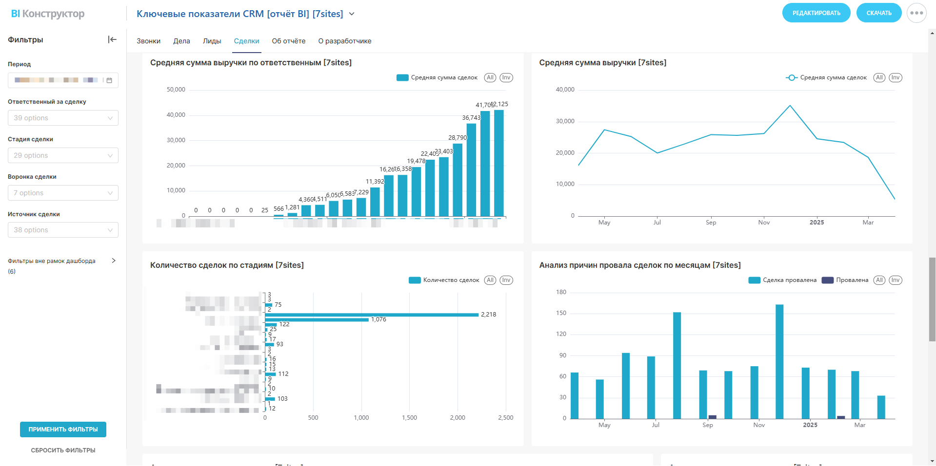 — Почему сделки срываются (анализ по месяцам и ответственным).