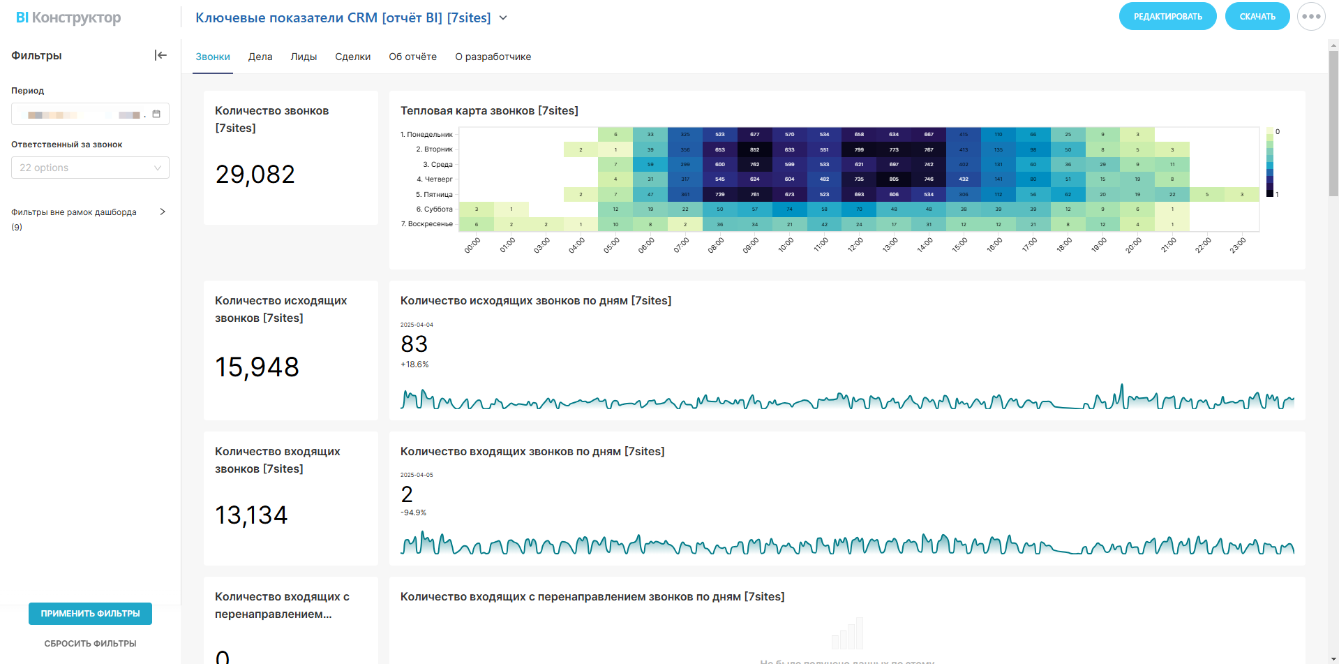 — Тепловая карта активности: в какие дни и часы клиенты звонят чаще.
