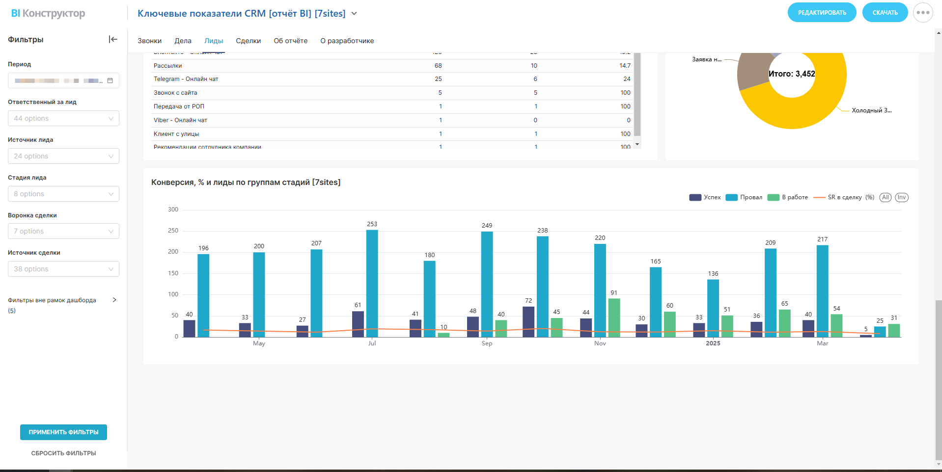 — Сколько лидов стали сделками, а где «просели».