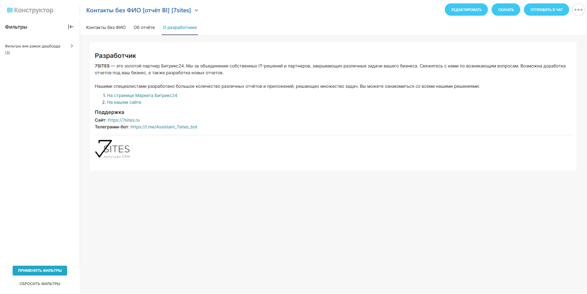 Отчёт позволяет оценить качество заполнения контактов, а именно: фамилия, имя, отчество.