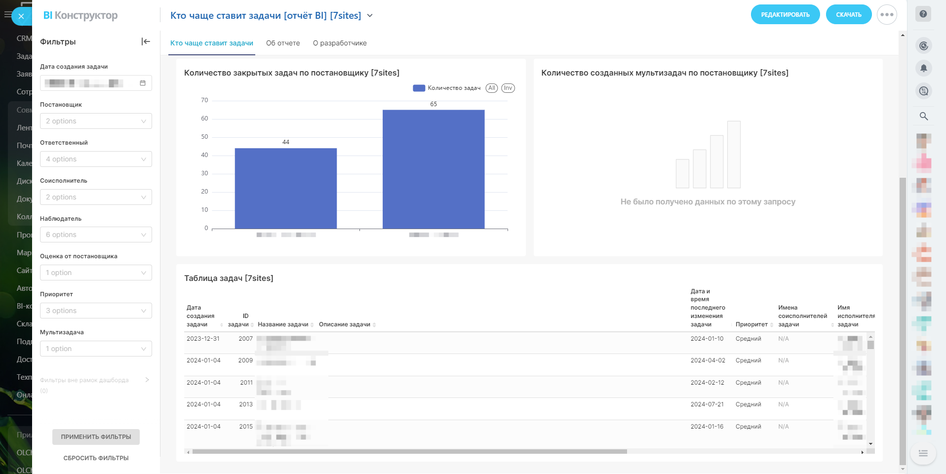 Задачи не только выполняют, но и кто-то эти задачи ставит. Давайте посмотрим кто это любит делать чаще, а кто реже благодаря следующим показателям: