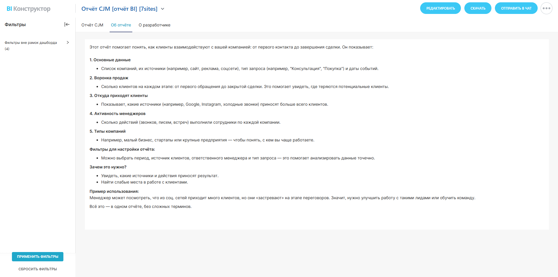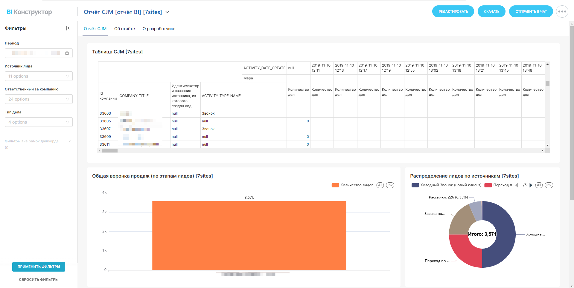Менеджер может посмотреть, что из соц. сетей приходит много клиентов, но они «застревают» на этапе переговоров. Значит, нужно улучшить работу с такими лидами или обучить команду.