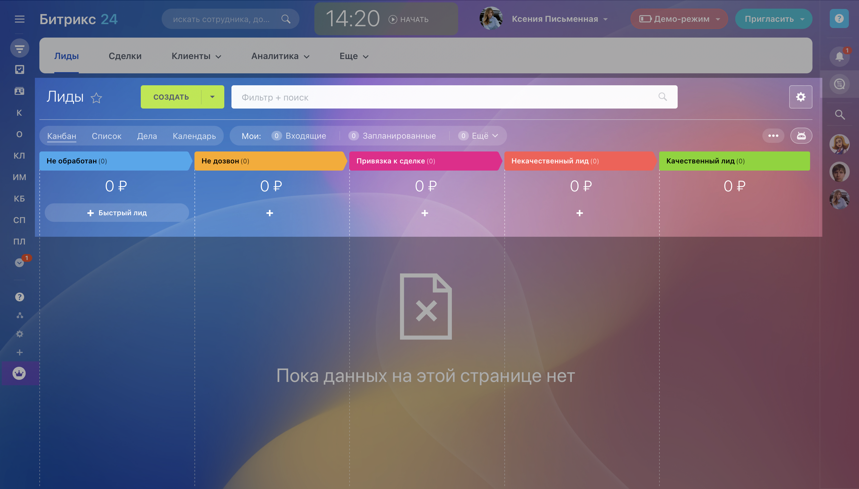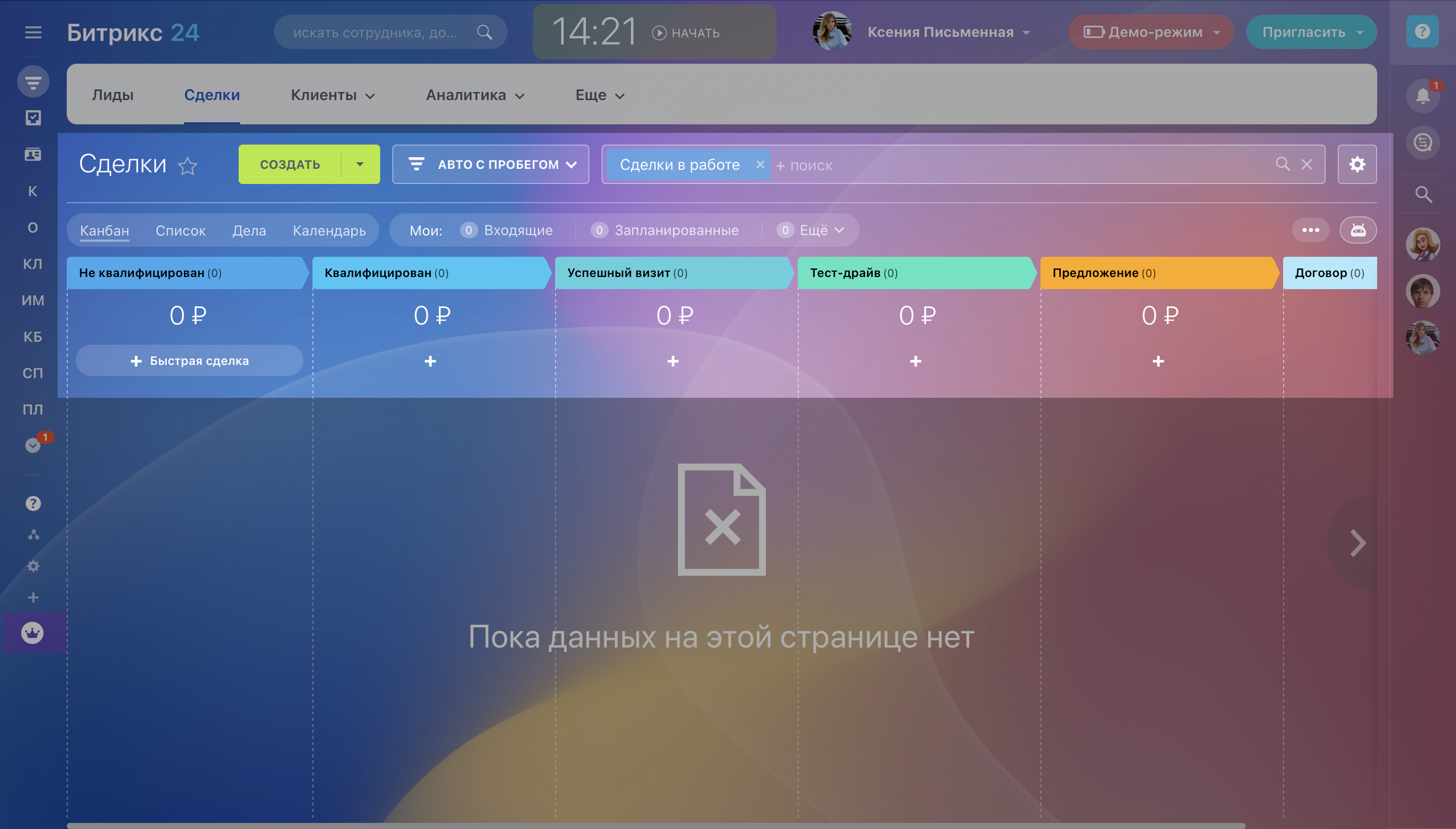 - Аналогично выстроен процесс создания сделок. Система не позволит создать сделку без лида, чтоб не потерять источник трафика.