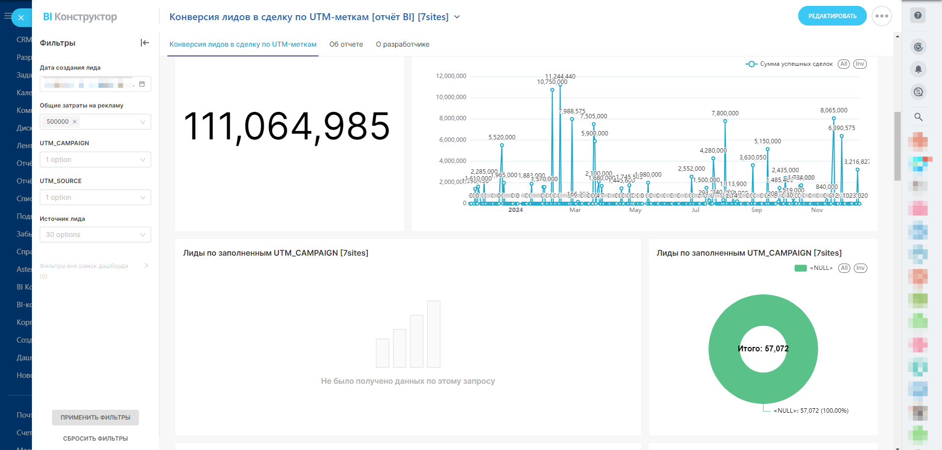 Обратите внимание, что в каждой таблице можно кликнуть на название сущности и перейти непосредственно в карточку лида/контакта/компании.