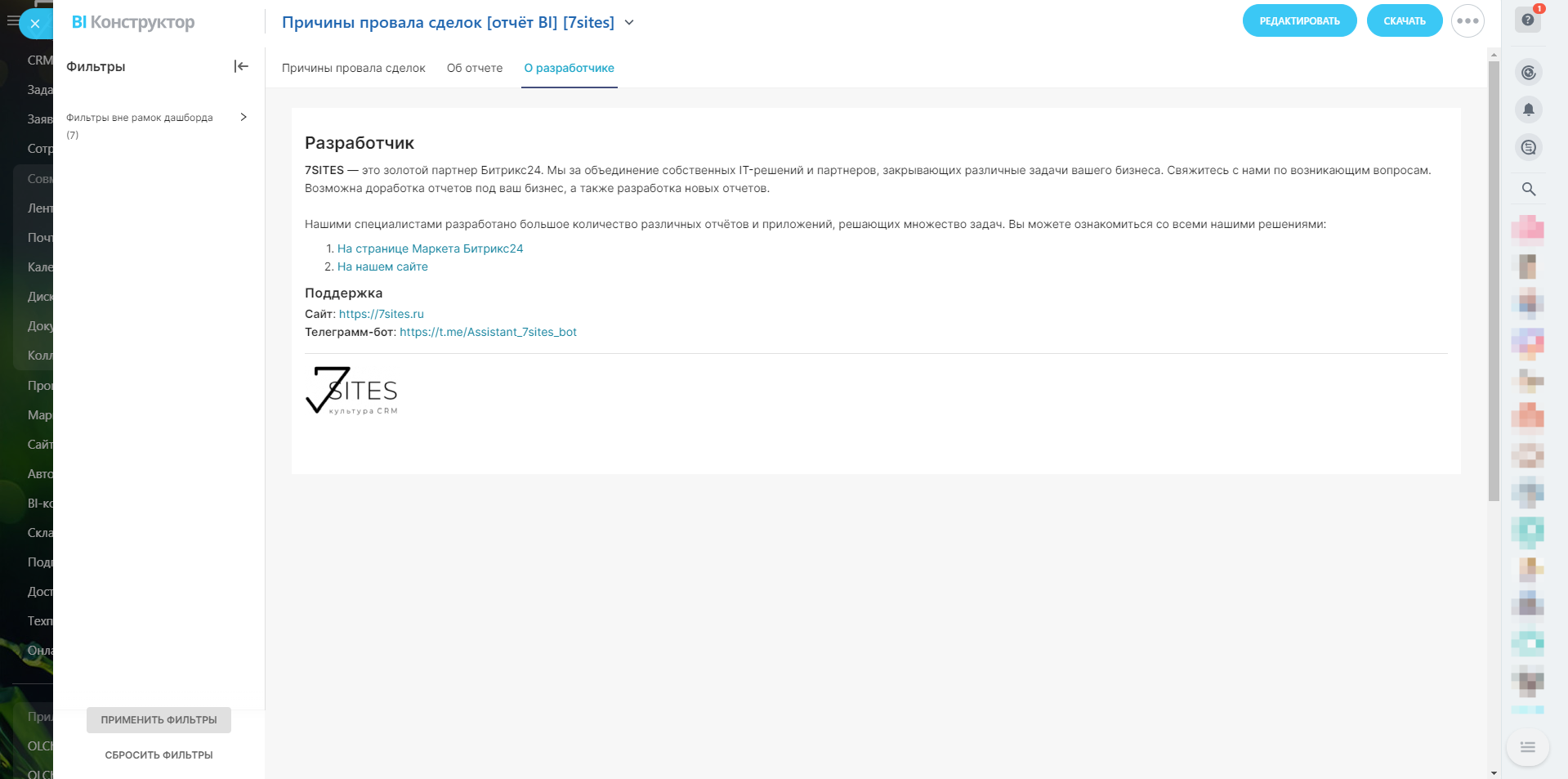 В отчёте представлены ключевые показатели, включая общее количество закрытых сделок за определённый период, а также визуализация этих данных в графическом формате для наглядности. Дополнительно будут созданы диаграммы, которые иллюстрируют количество сделок по провальным стадиям, а также показывают данные по воронкам и их неудачным результатам. Особое внимание также будет уделено распределению провальных сделок по ответственным лицам. В заключение, отчёт включает таблицу, которая суммирует все важные данные, позволяя более детально разобраться в причинах провала сделок и определить пути улучшения.