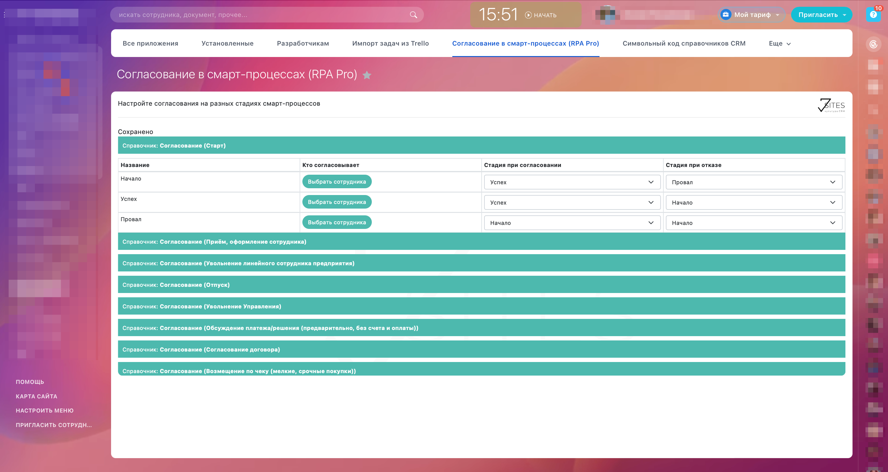 Приложение заменяет RPA (роботизацию процессов) в функционале согласования на смарт-процессы.