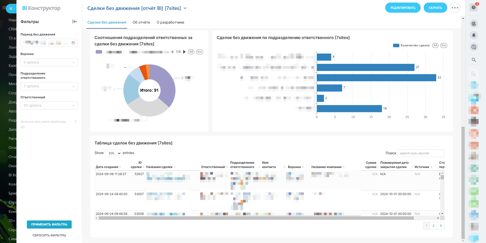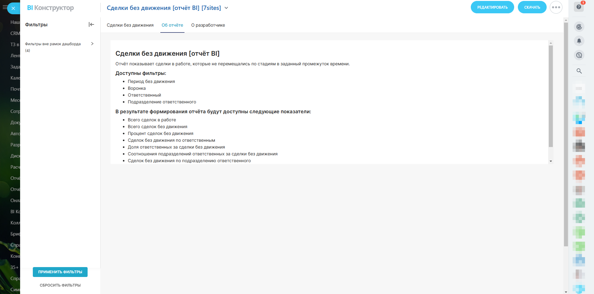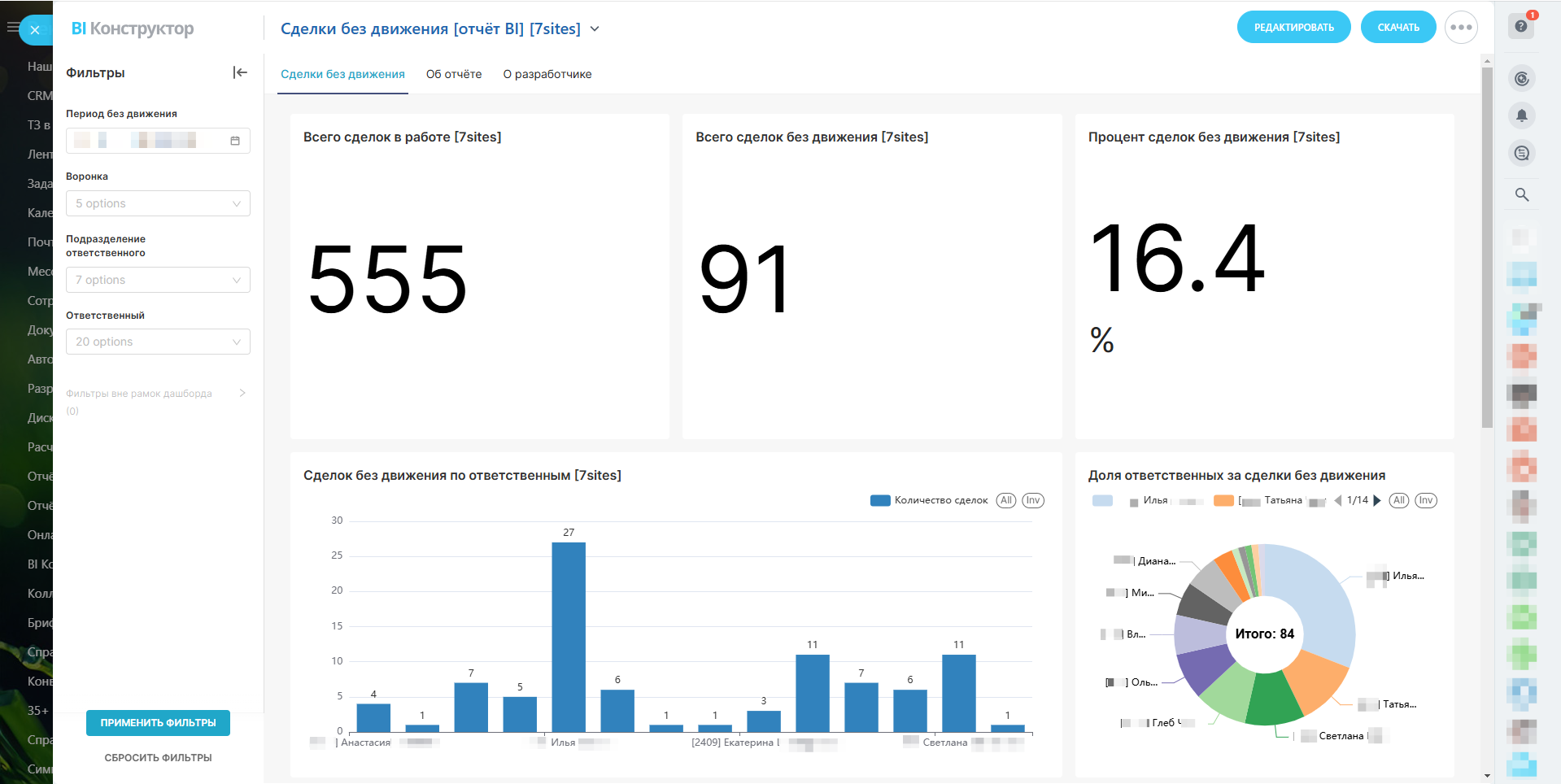 Сделки в работе, которые не перемещались по стадиям в заданный промежуток времени.