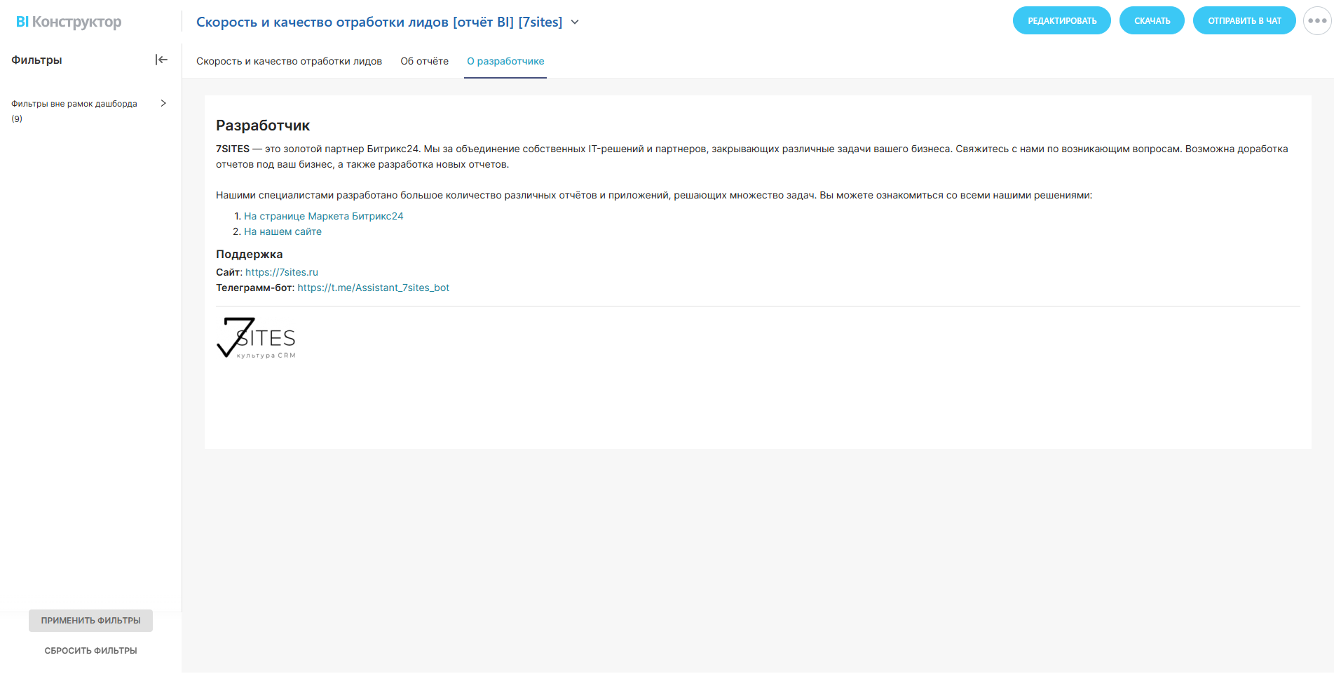 - Таблица с проблемными заявками: кто отвечал, название лида, даты создания и закрытия, время обработки, тип нарушения.