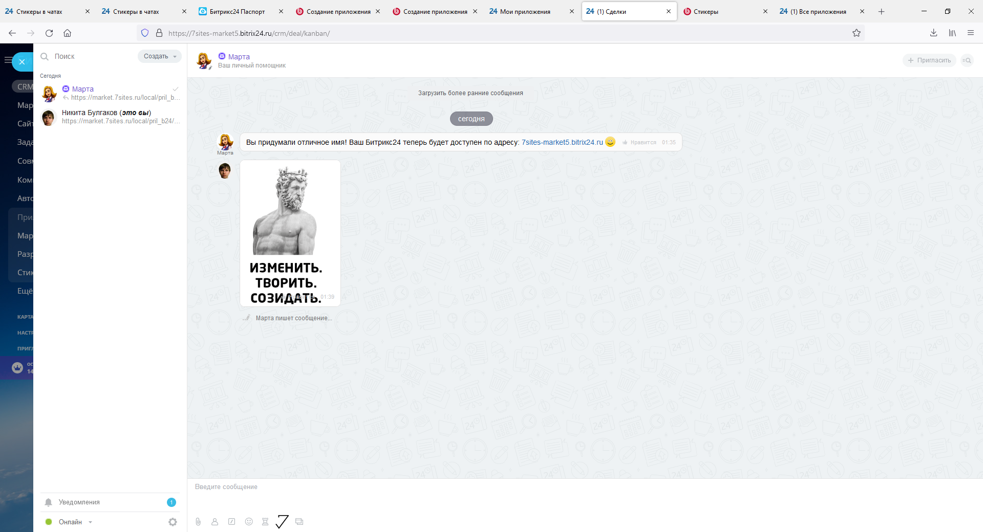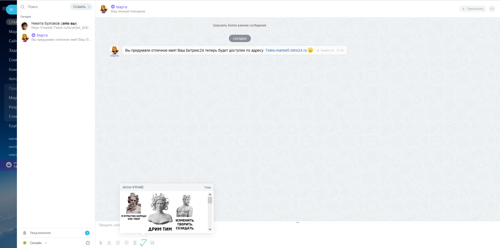 Приложение позволит вам использовать любимые стикеры популярных мессенджеров - прямо в Битрикс24!