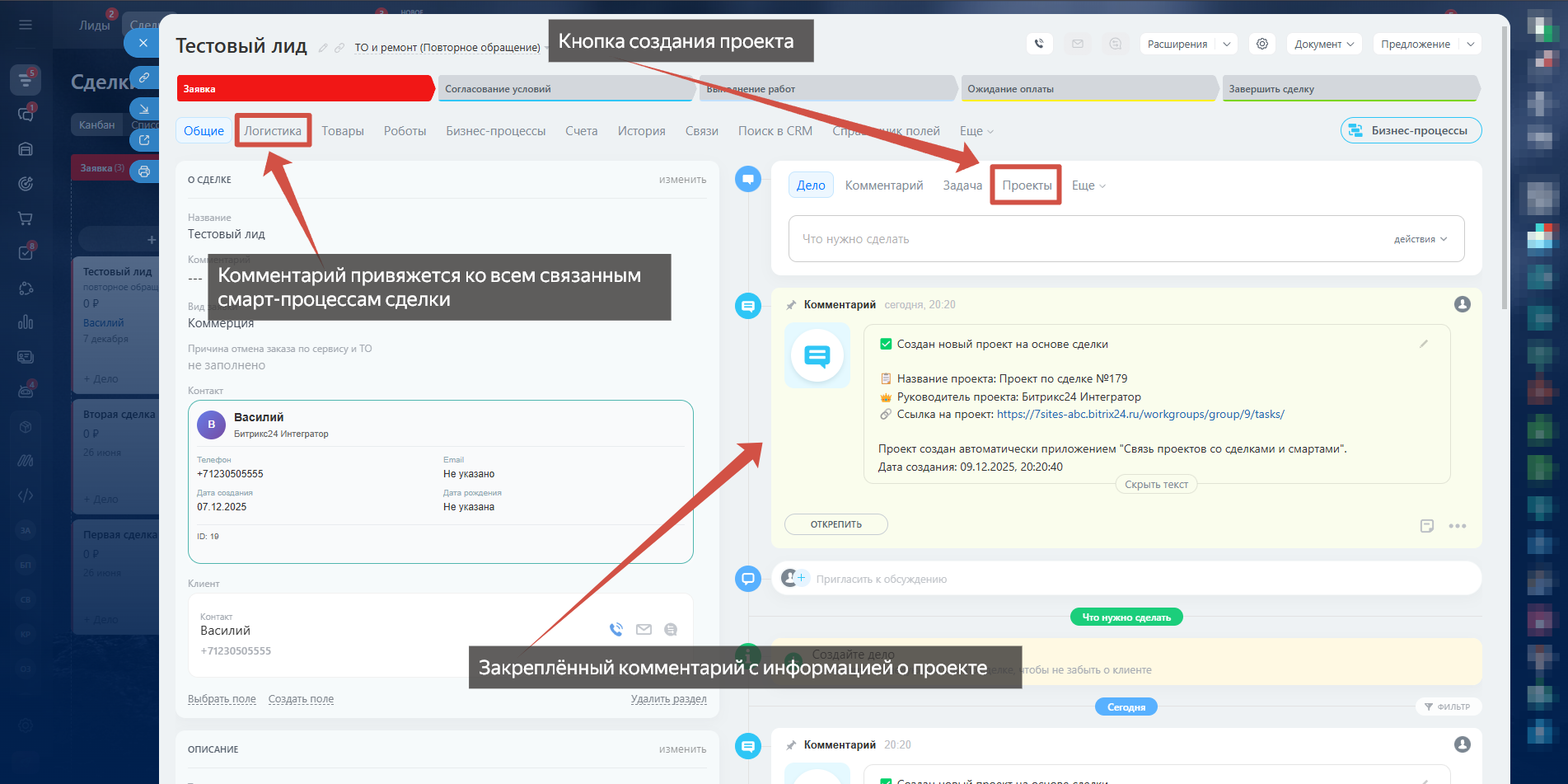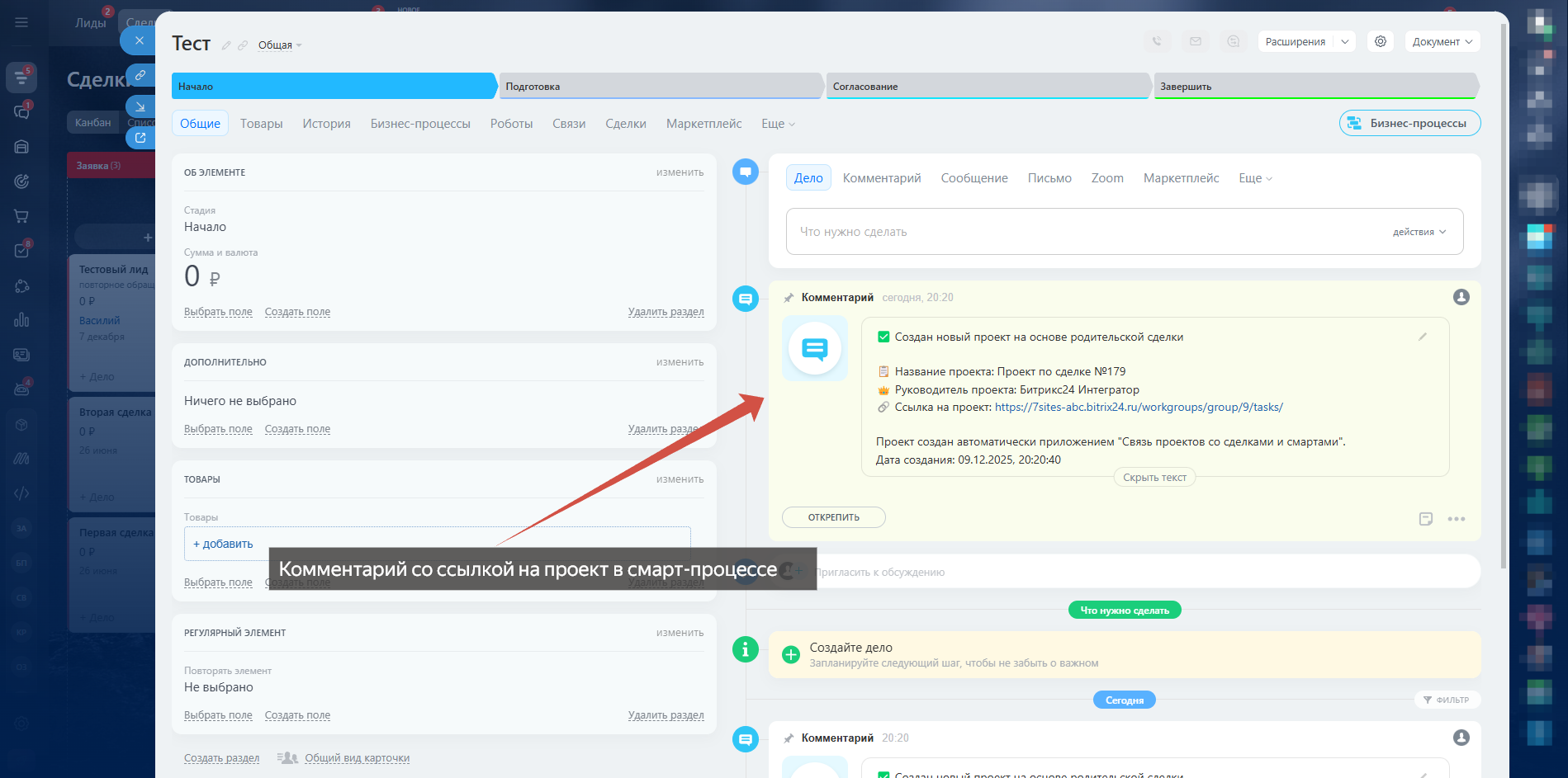 4. Приложение также работает со смарт-процессами и другими сущностями CRM