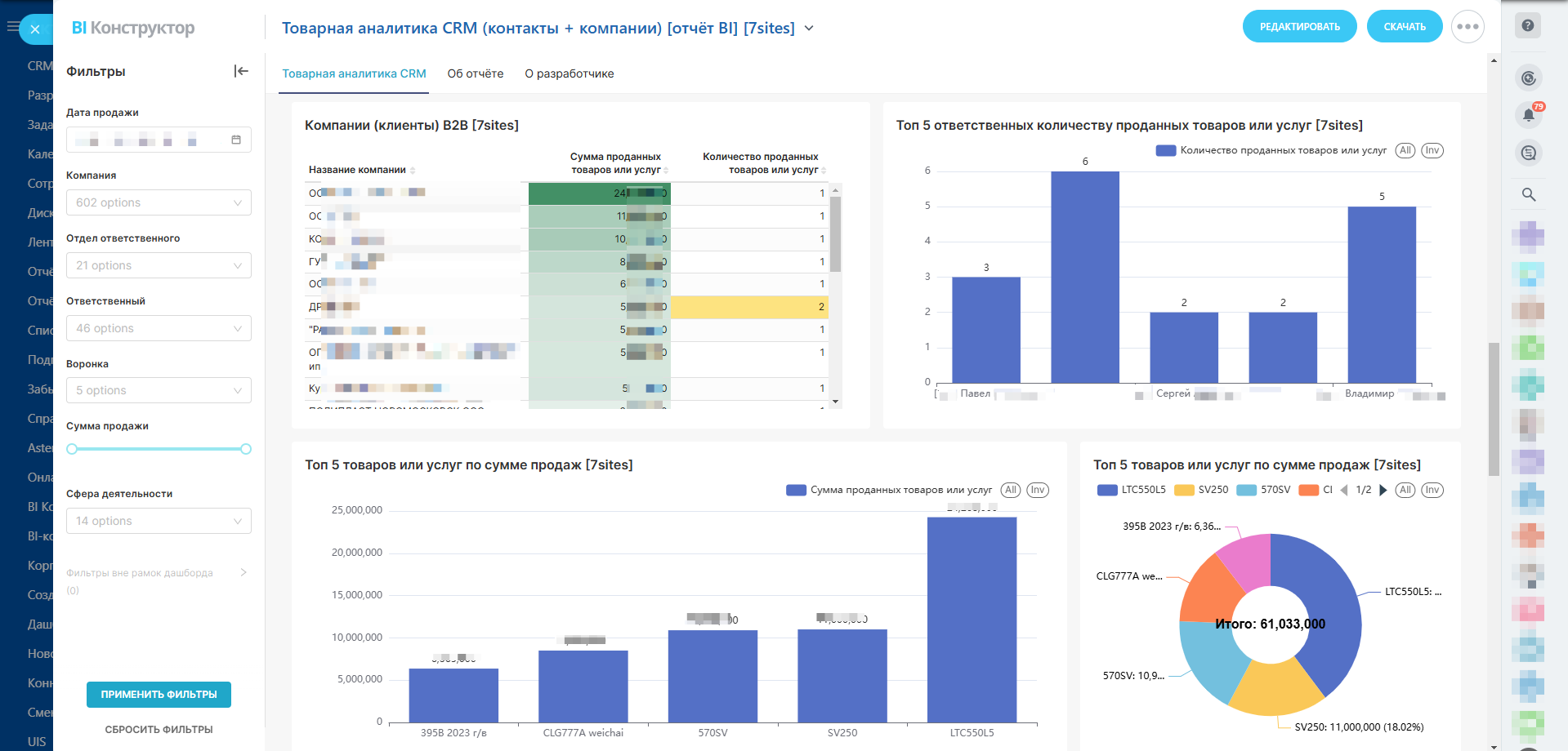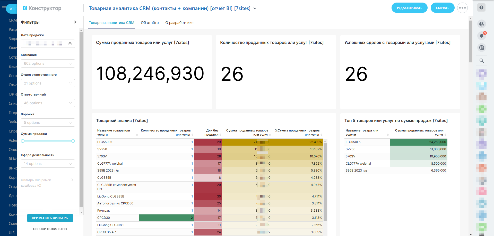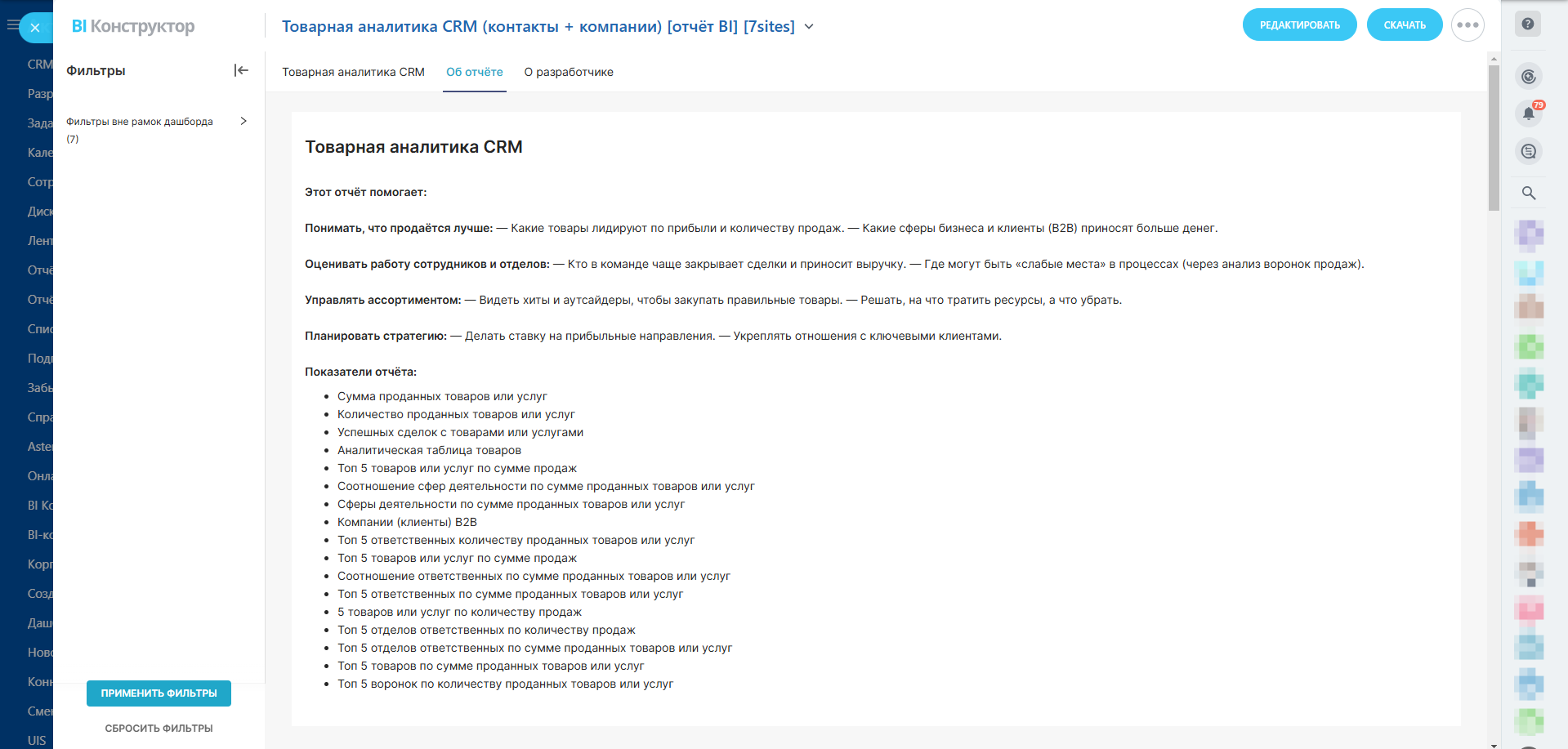 Товарная аналитика CRM (контакты + компании) [отчёт BI]