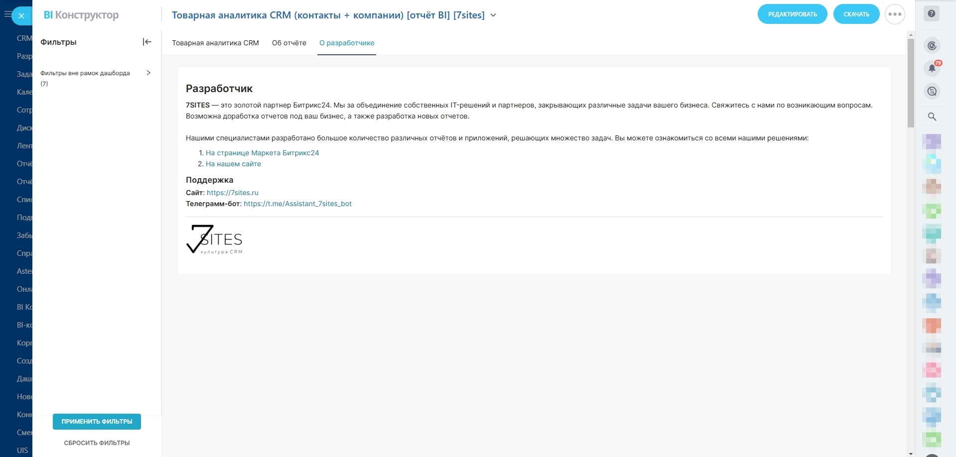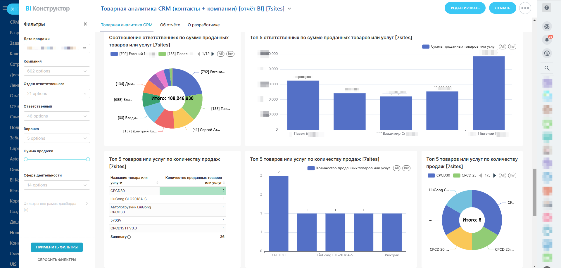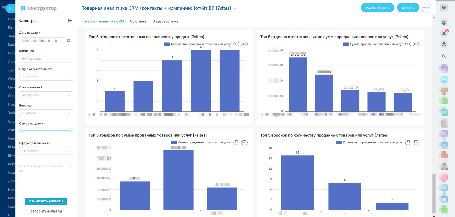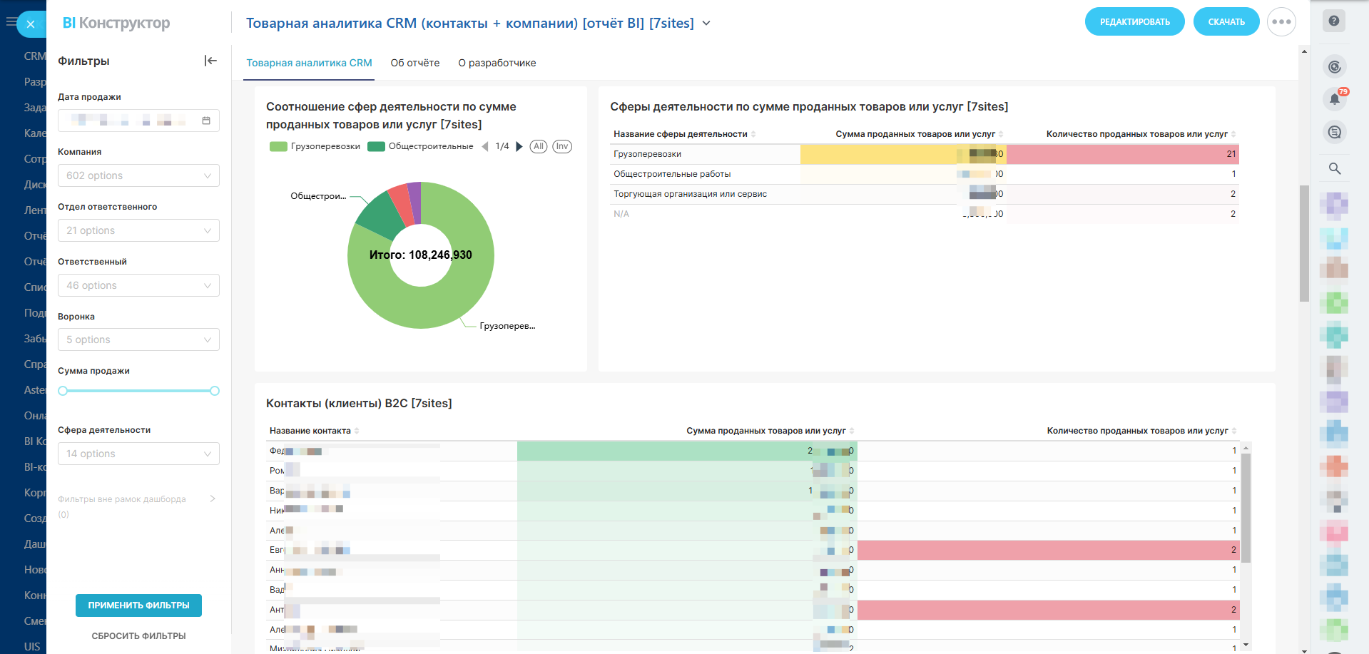 Товарная аналитика CRM (контакты + компании) [отчёт BI]
