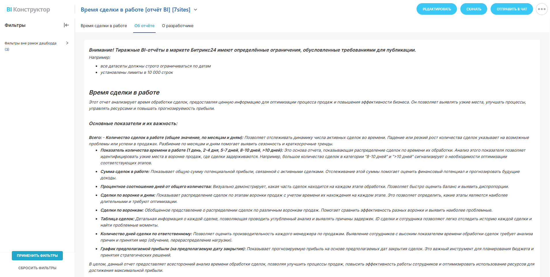 Этот отчёт анализирует время обработки сделок, предоставляя ценную информацию для оптимизации процесса продаж и повышения эффективности бизнеса. Он позволяет выявлять узкие места, улучшать процессы, управлять ресурсами и повышать прогнозируемость прибыли.