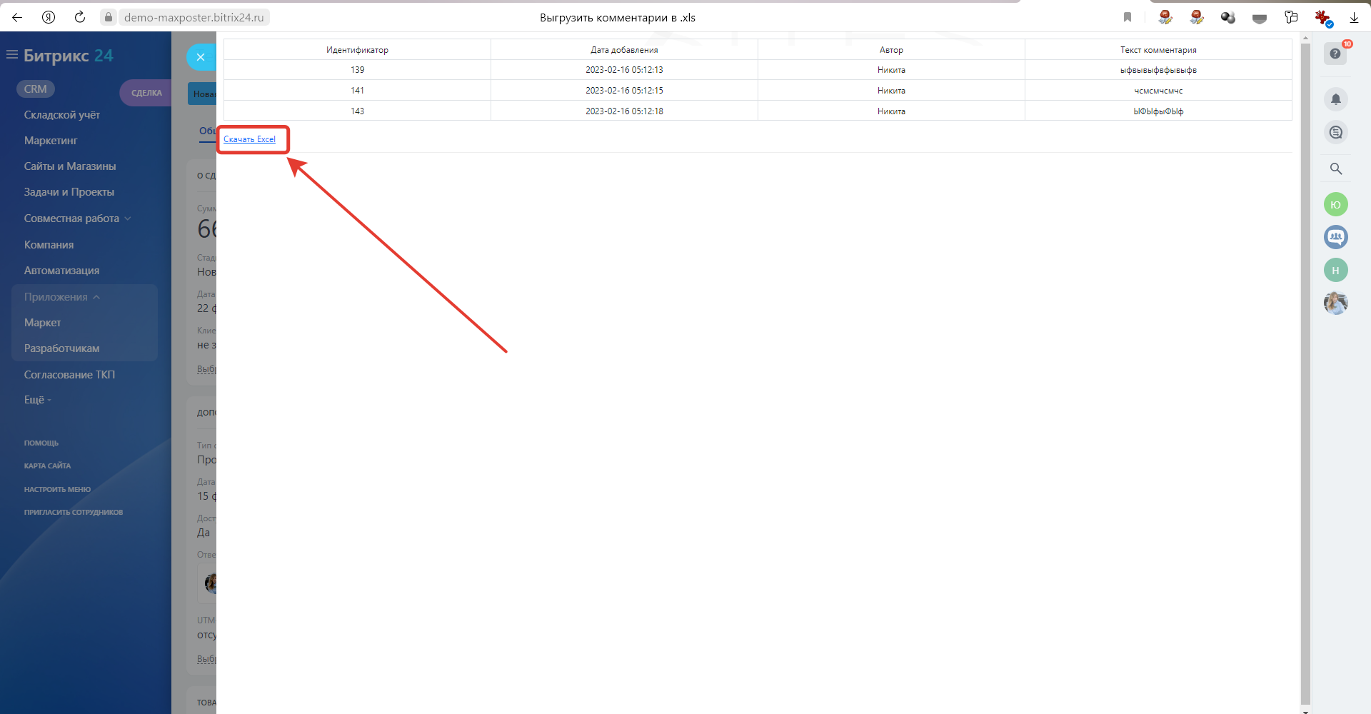 Примечание. Выгрузка происходит в том же формате, что и при экспорте в Excel в других частях Битрикс24. Поэтому при открытии файла Excel может выдавать предупреждение о том, что формат не соответствует расширению файла. Это сообщение игнорируем - нажимаем "Да".