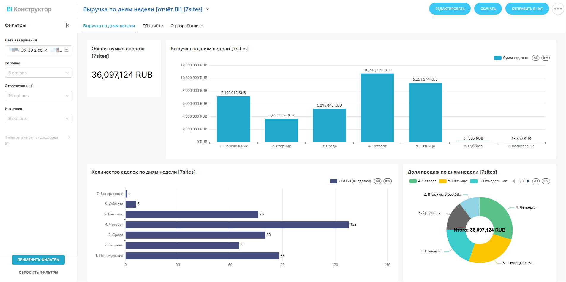 • Сэкономите рекламный бюджет, понимая, какие каналы приводят клиентов, которые закрываются в конкретные дни.