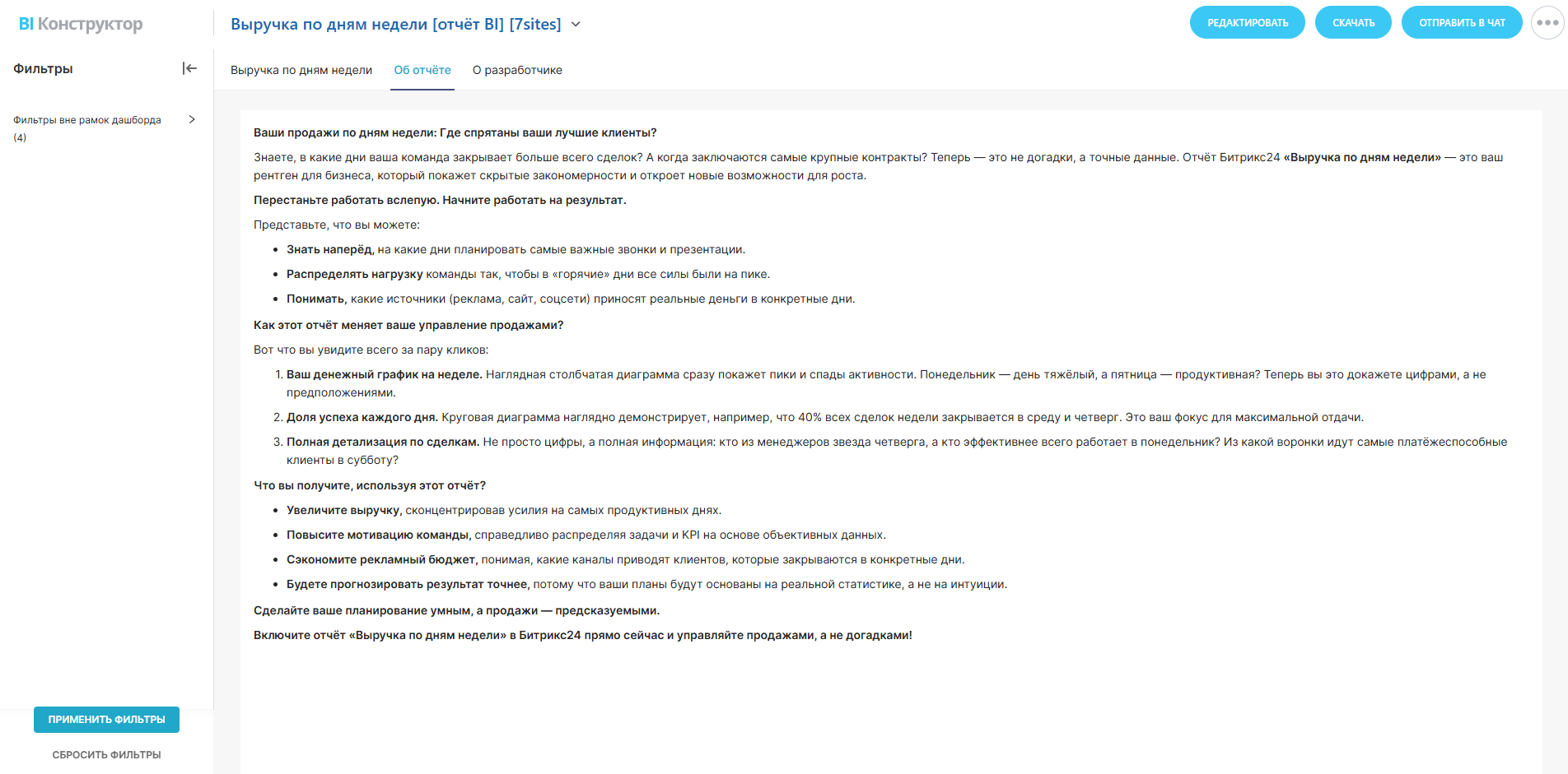 Включите отчёт «Выручка по дням недели» в Битрикс24 прямо сейчас и управляйте продажами, а не догадками!