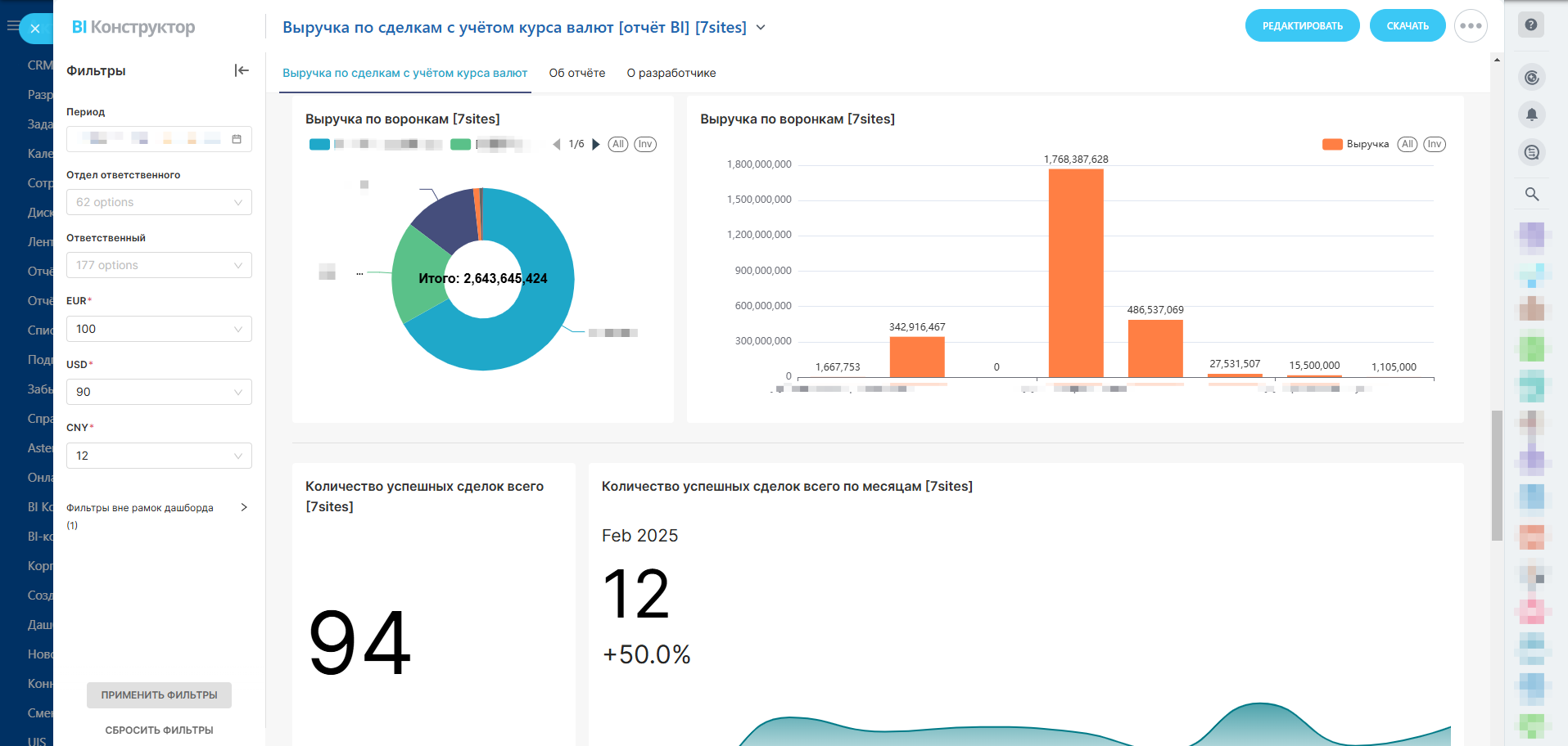 Выручка по сделкам с учётом курса валют [отчёт BI]