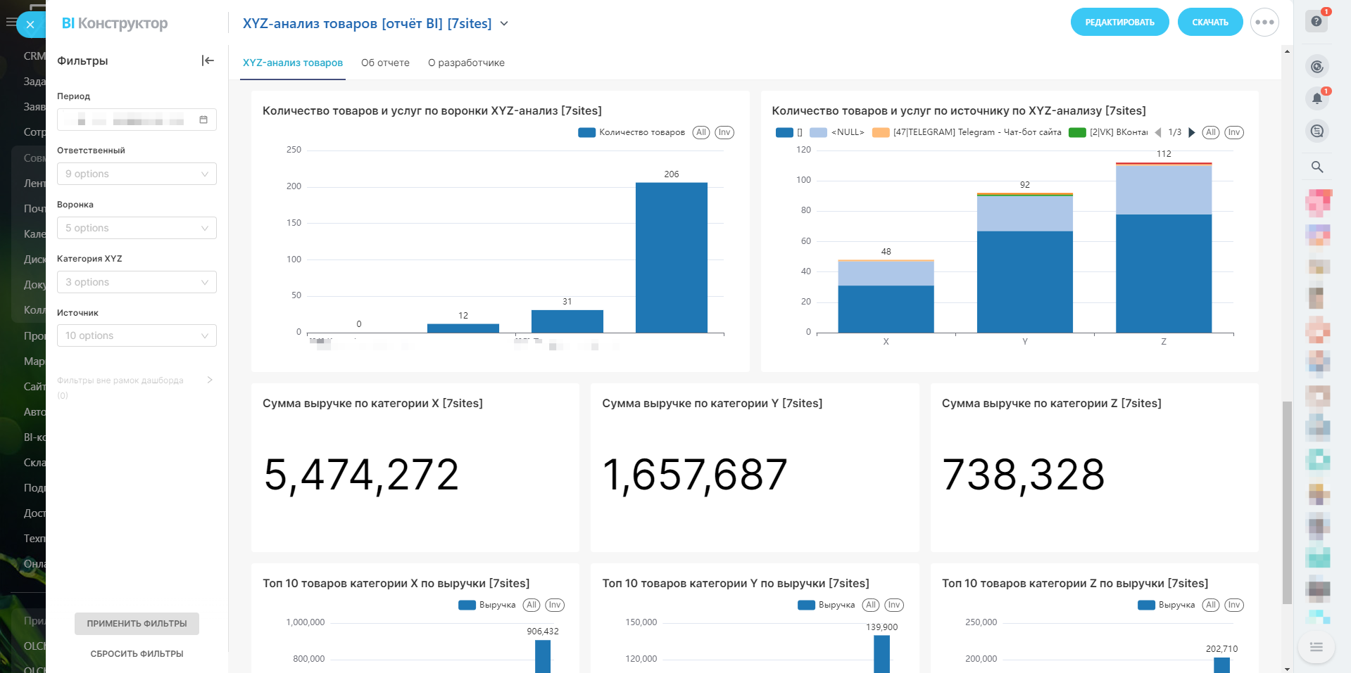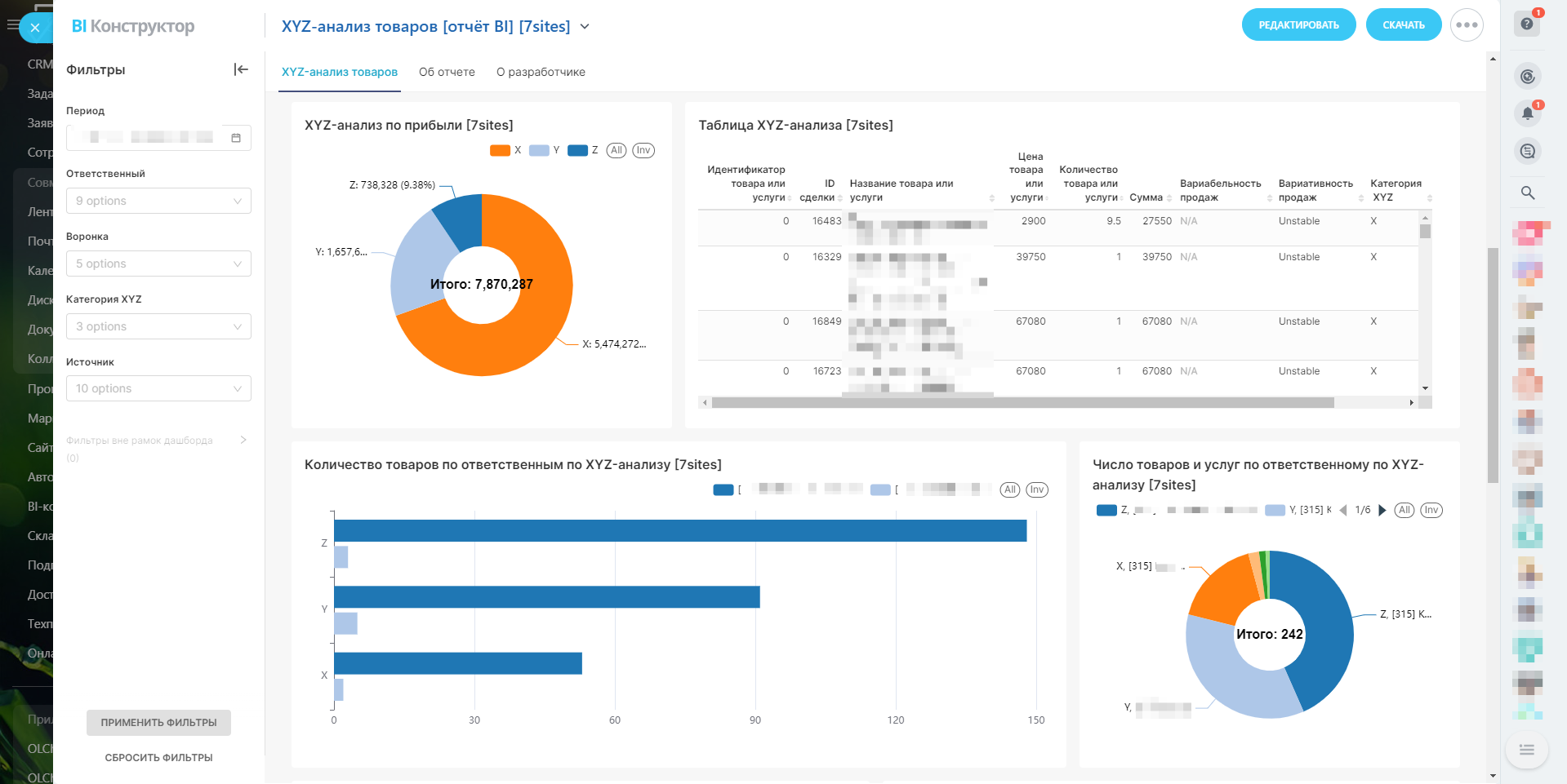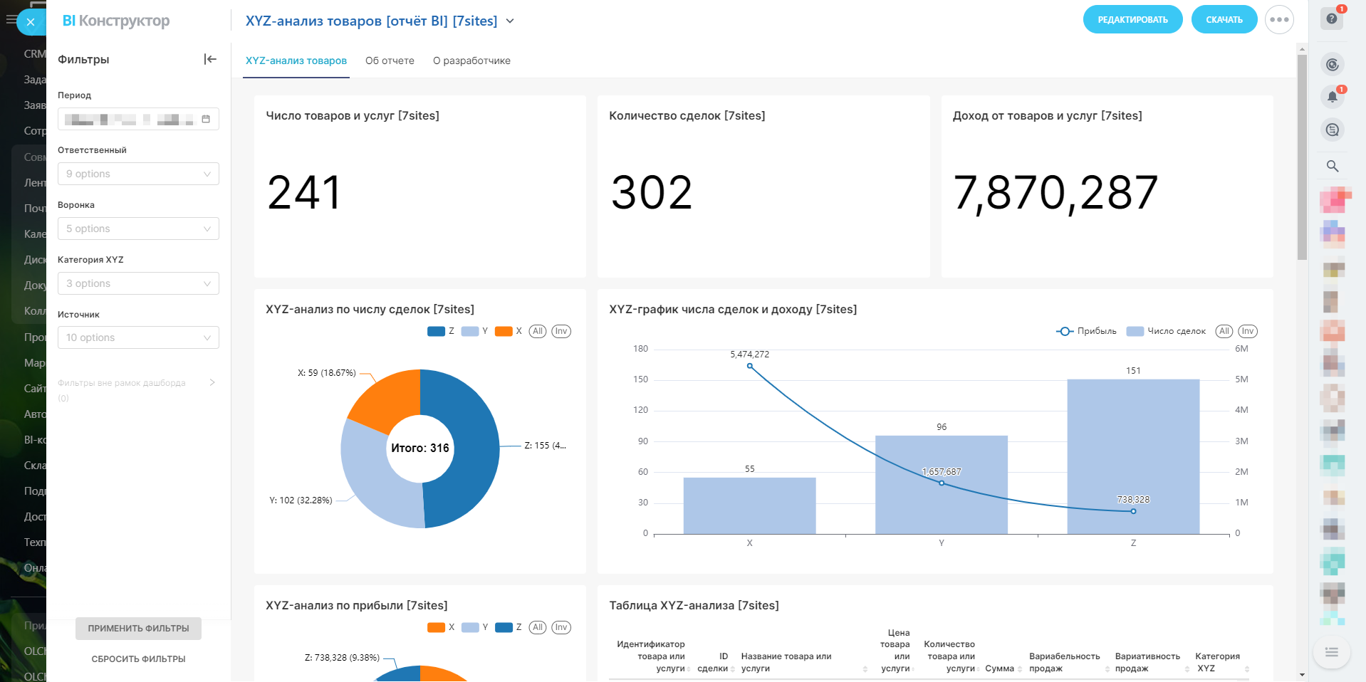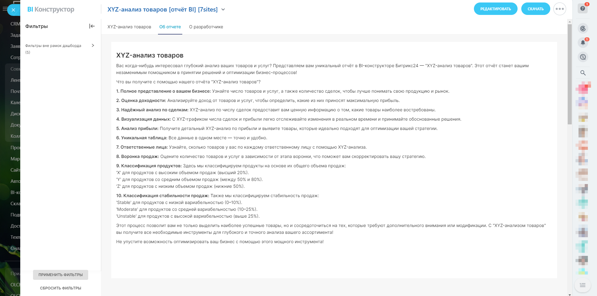 Вас когда-нибудь интересовал глубокий анализ ваших товаров и услуг? Представляем вам уникальный отчёт в BI-конструкторе Битрикс24 — "XYZ-анализ товаров".